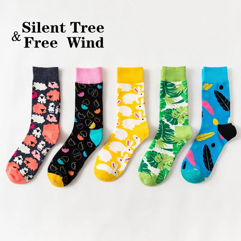 Носки мужские длинные смешные цветные, чесаный хлопок, повседневные уличные в стиле Харадзюку, хип-хоп, счастливый Ленивец, динозавр, коала, лист