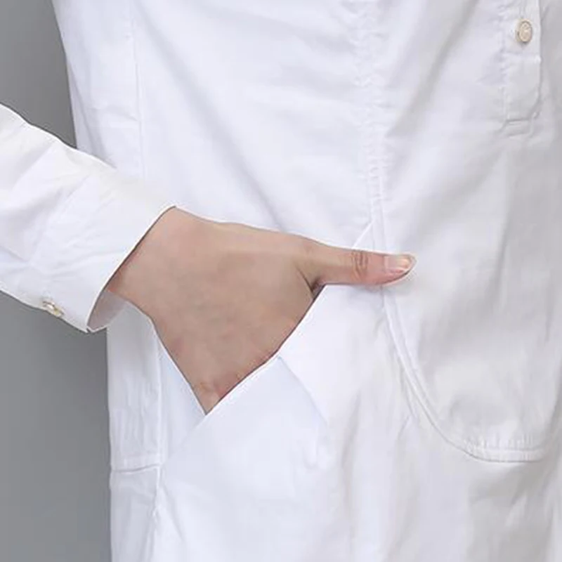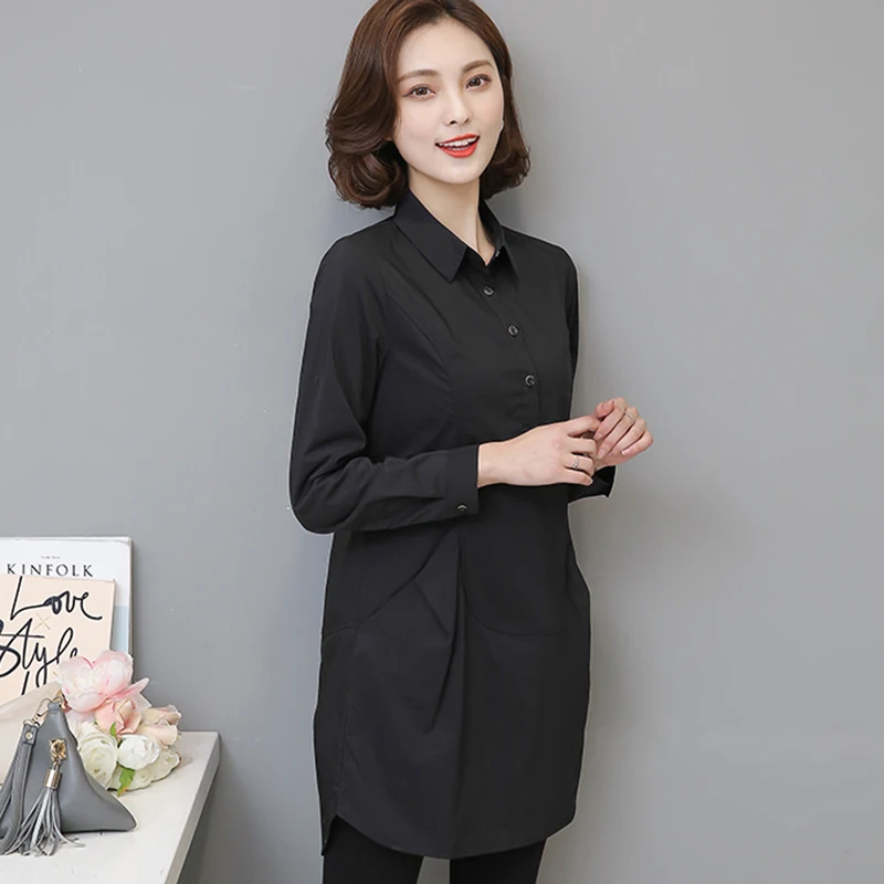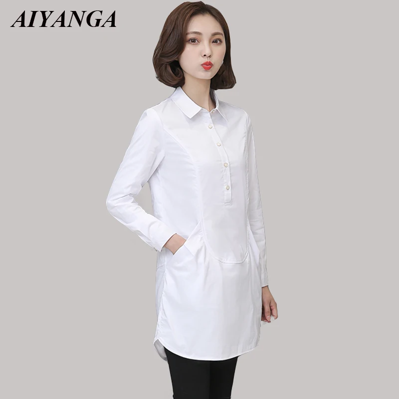 Женская блузка с длинным рукавом, белая Повседневная рубашка средней длины размера плюс, для осени и зимы, 2018