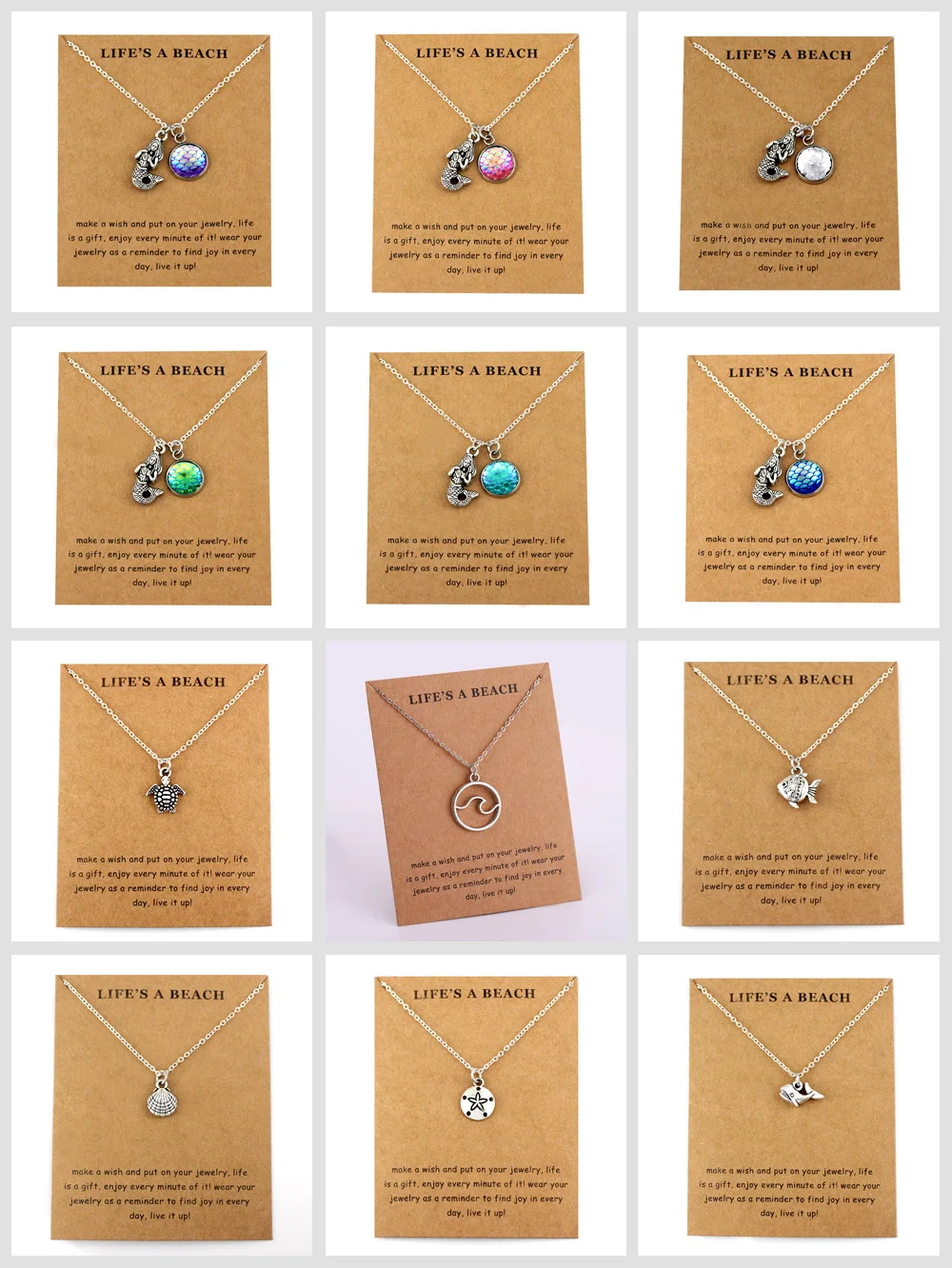 Подвеска в виде морской звезды, морской раковины, морской черепахи, рыбы, акулы, песка, доллара, русалки, ожерелья для женщин и мужчин, модные украшения в подарок