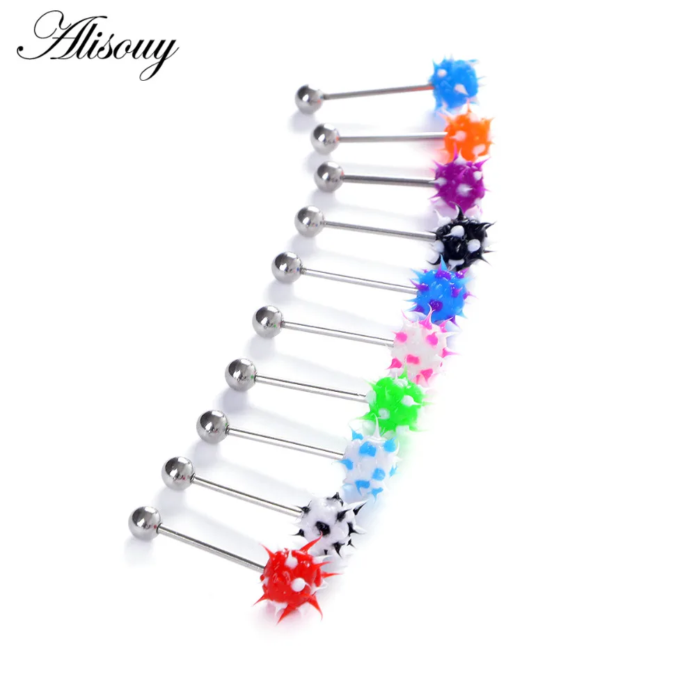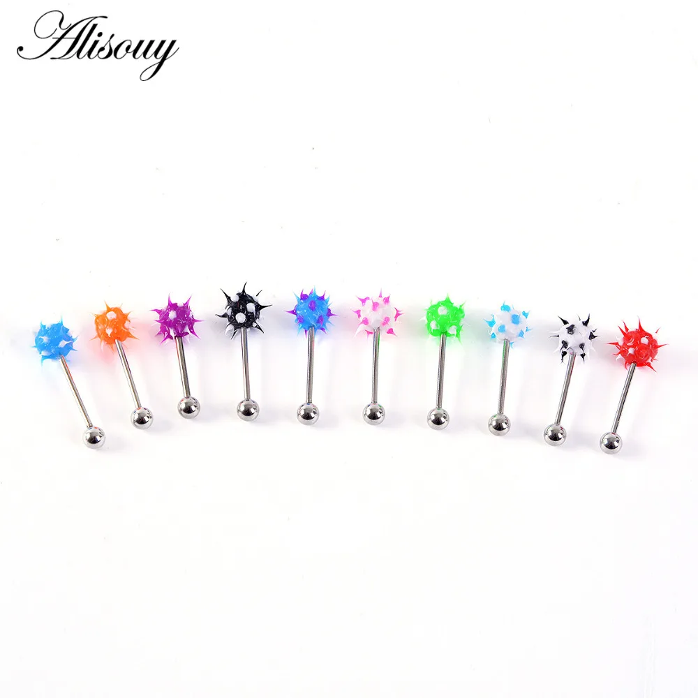 Alisouy 10 шт. в партии, Радужный цвет, силиконовый шарик, шипы, колокольчики, кольца для живота, соска, панковские мужские и женские пирсинг, ювелирные изделия для тела