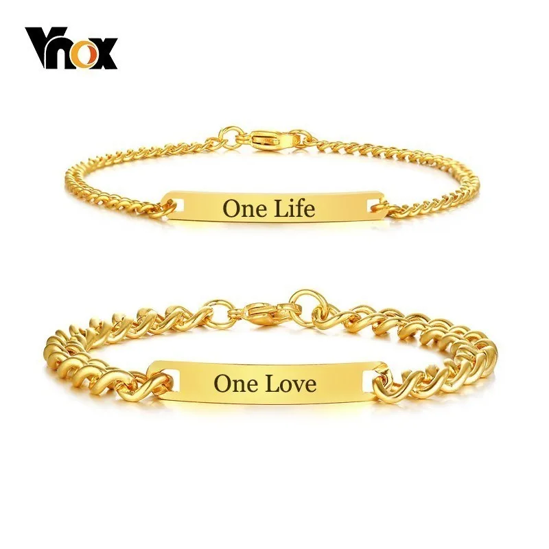Vnox индивидуальные Парные браслеты золотого цвета из нержавеющей с...