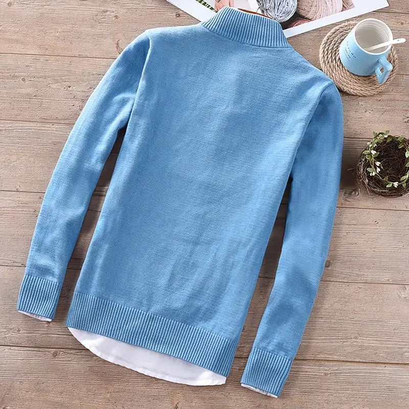 Мужской Однотонный свитер с воротником-стойкой, синий облегающий хл...