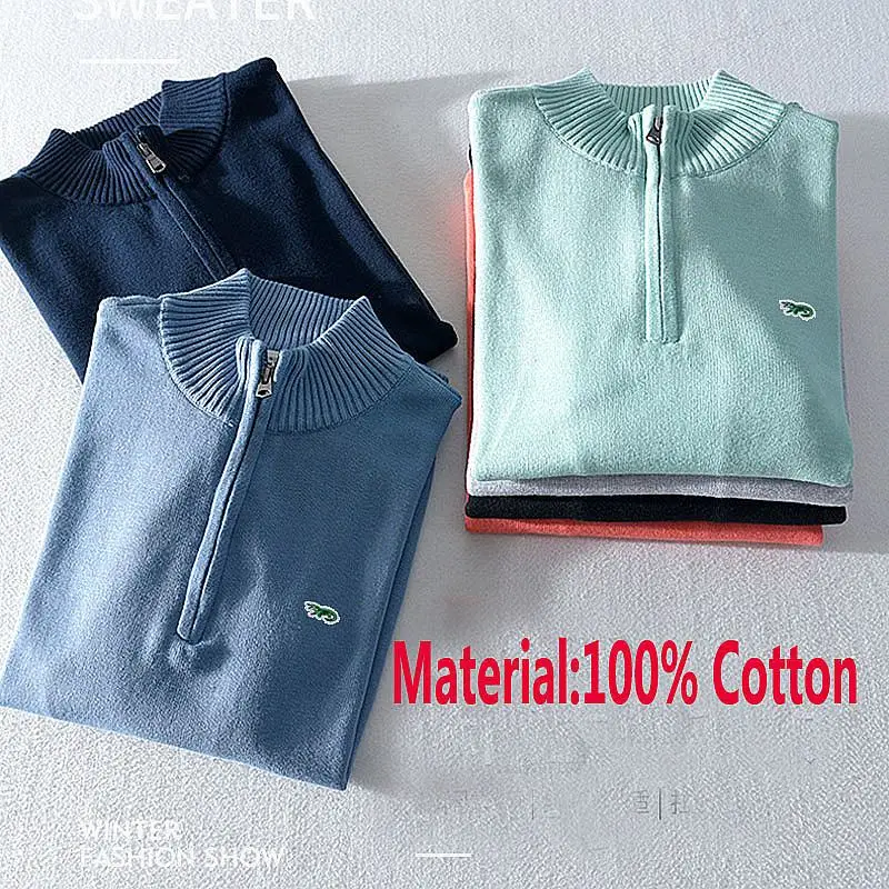 Мужские свитера из кашемира и шерсти на молнии с вышивкой, Повседне...