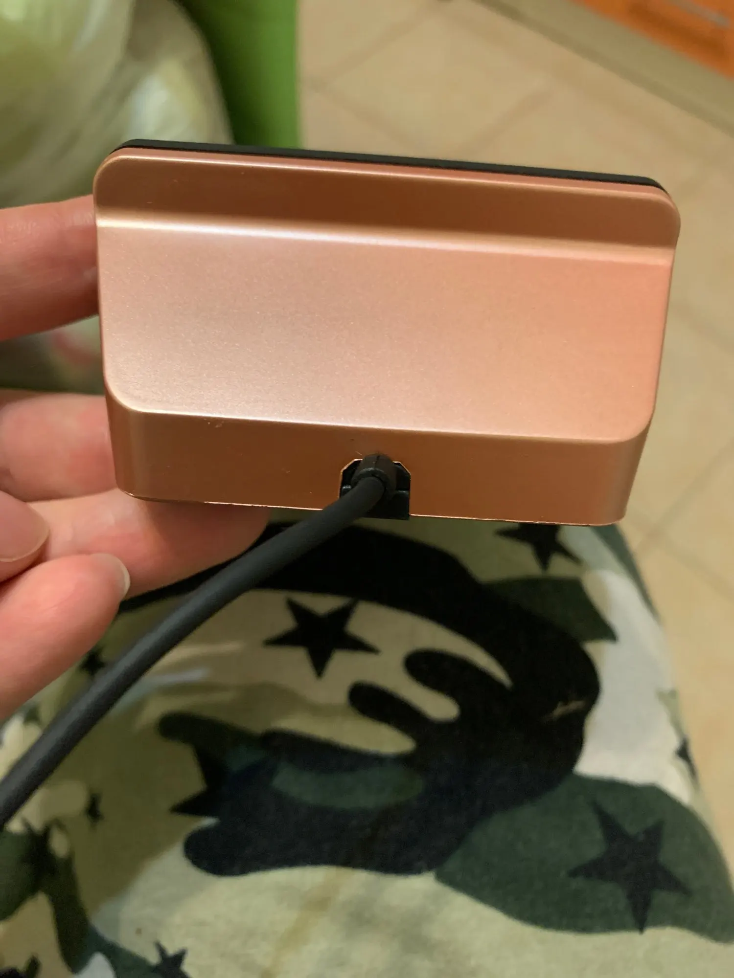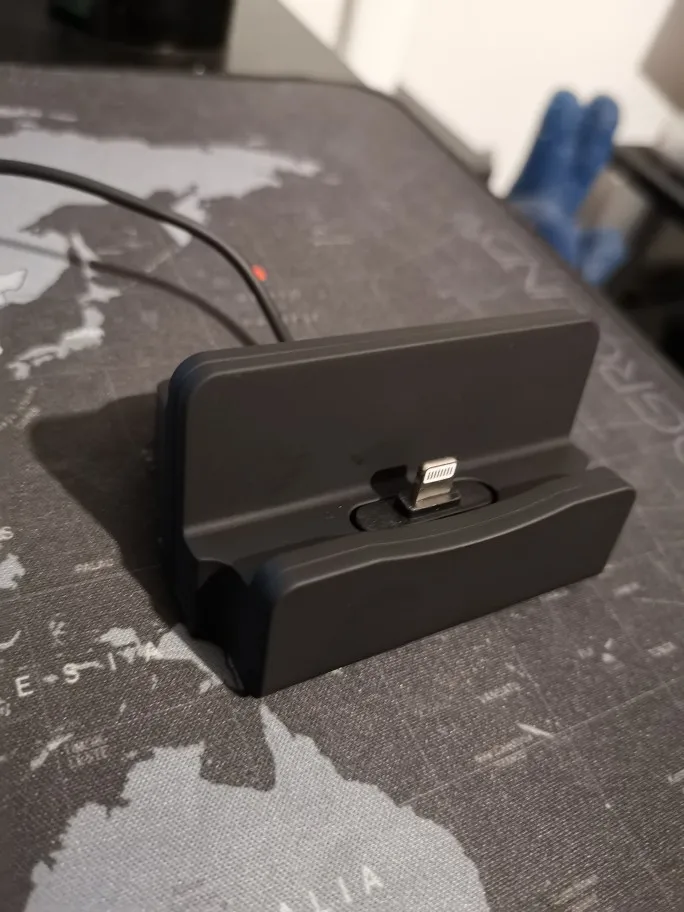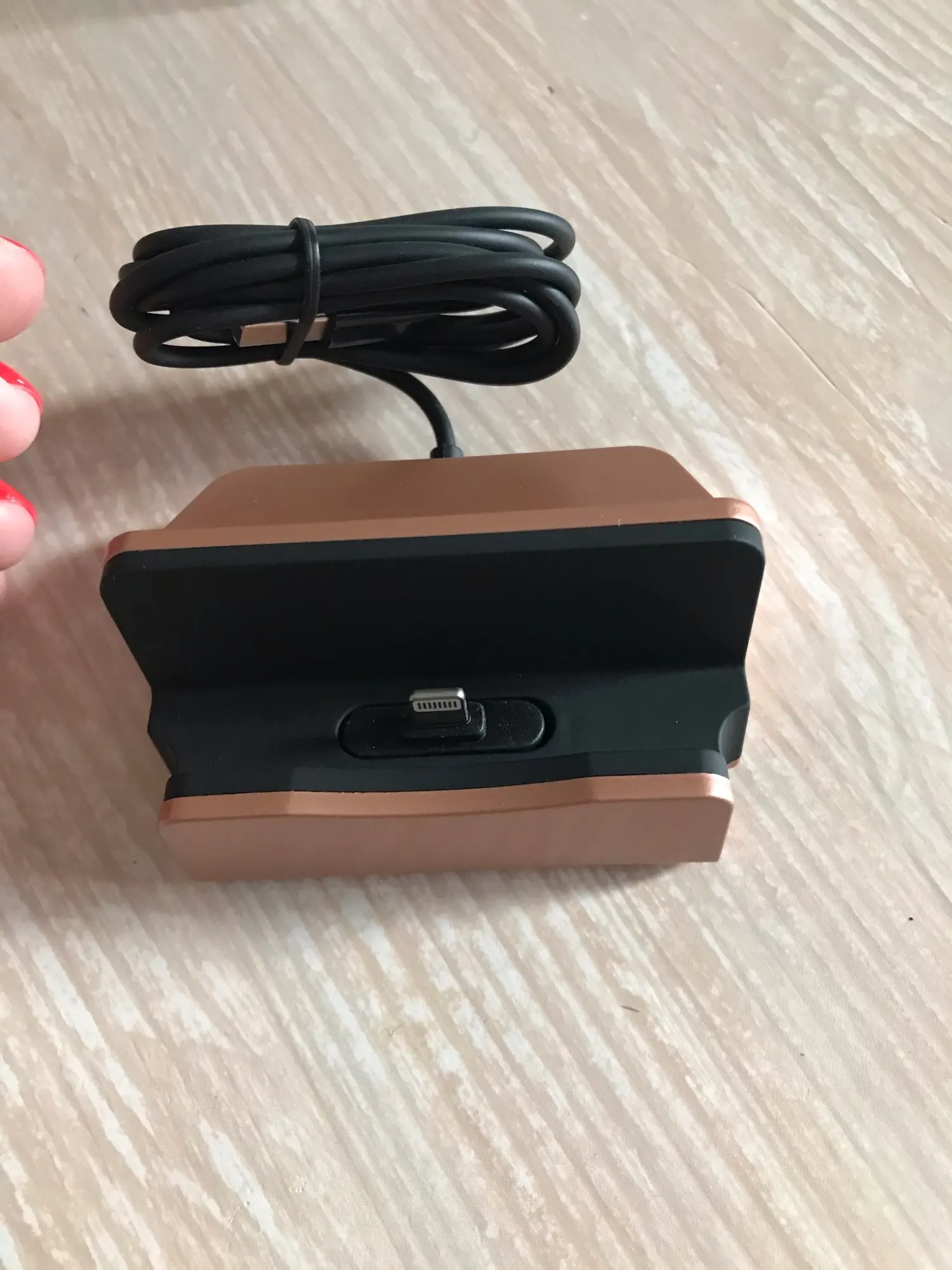 За эти деньги нормальная подставка. Штекер в телефон входит туго, сам штекер на подставке не монолитно закреплён, немного ходит. Опасаюсь за разъём в телефоне, надеюсь не повредится. Кабель usb 2.0, никаких быстрых зарядок. Очень скользит по столу.