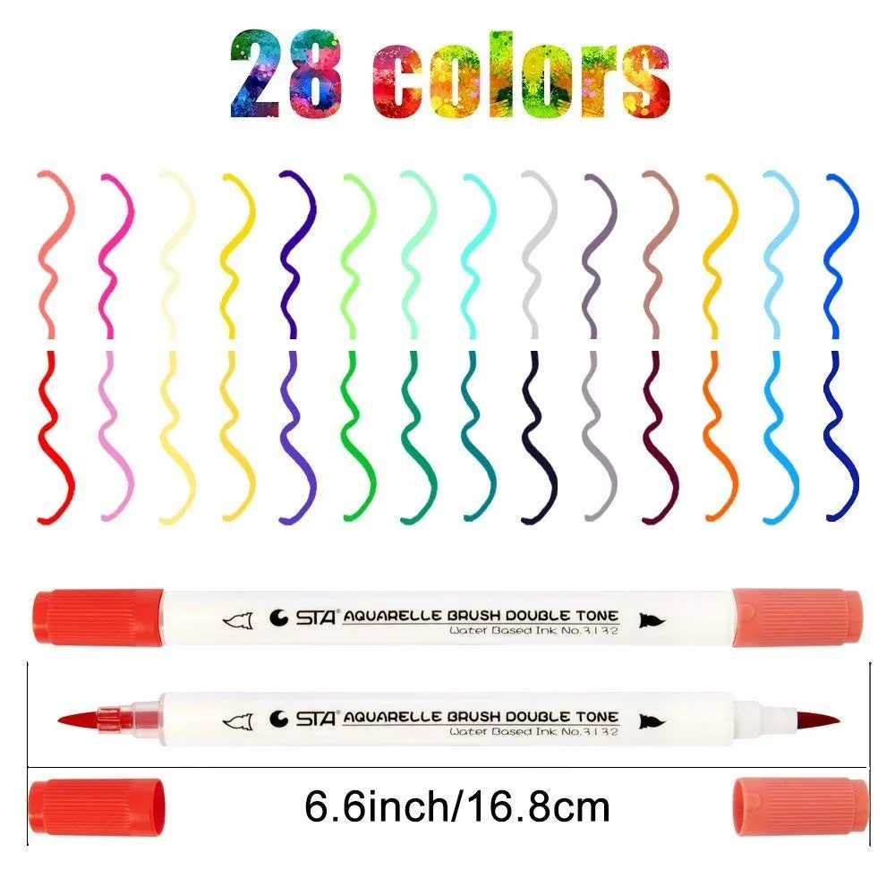 Маркеры художественные с двойным наконечником, тонкие точечные ручки для журнала и маркеры с цветной кистью для детей и взрослых, 14 красок