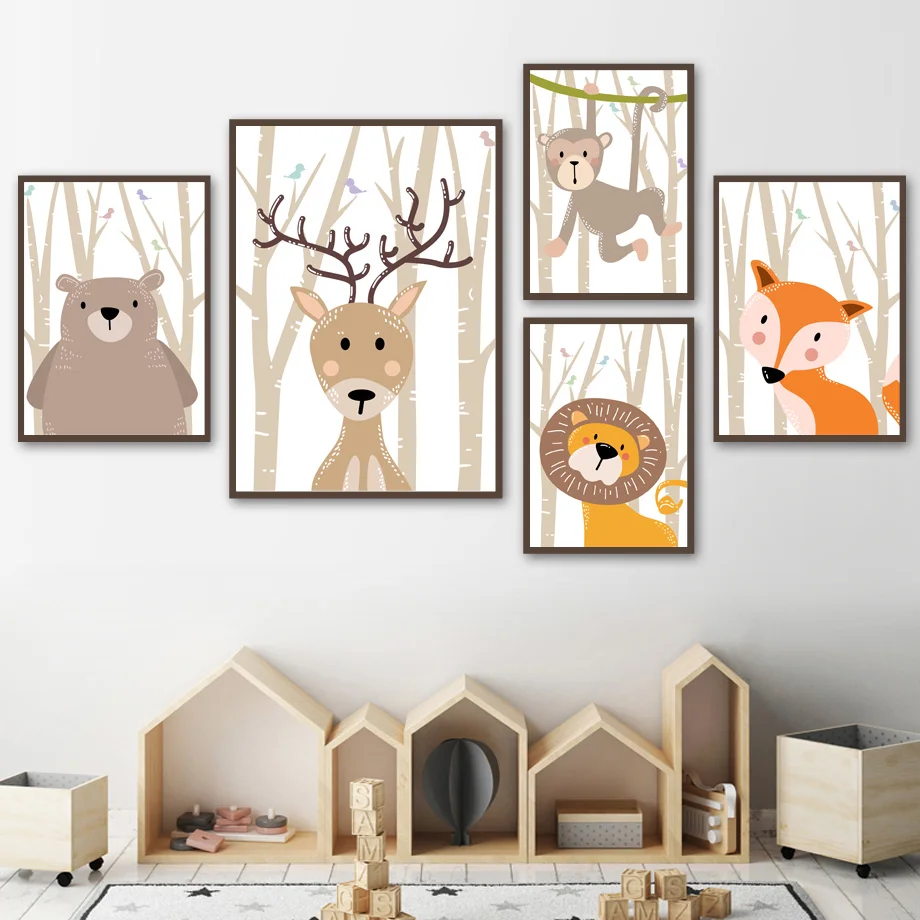 Лиса медведь Лев Олень кролик лес настенная живопись на холсте скандинавские плакаты и принты настенные картины для детской комнаты декор для детской комнаты