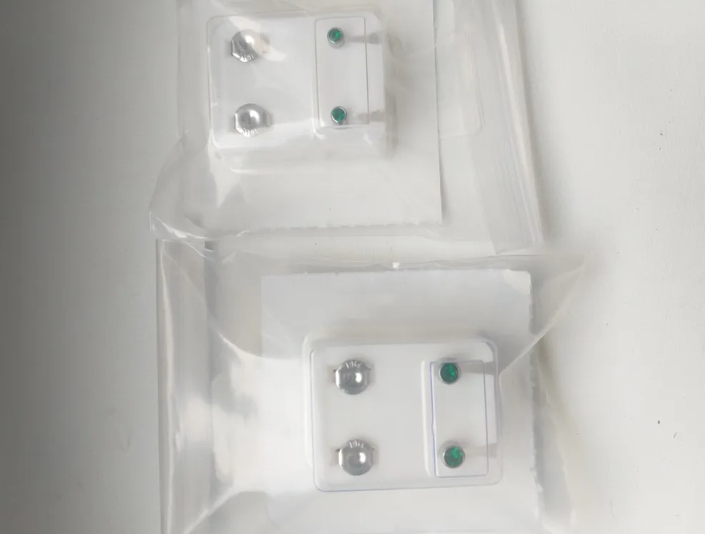 красивые серёжки в стерильной индивидуальной упаковке. в точности как на фото. очень довольна! хирургическая сталь, аллергии нет
