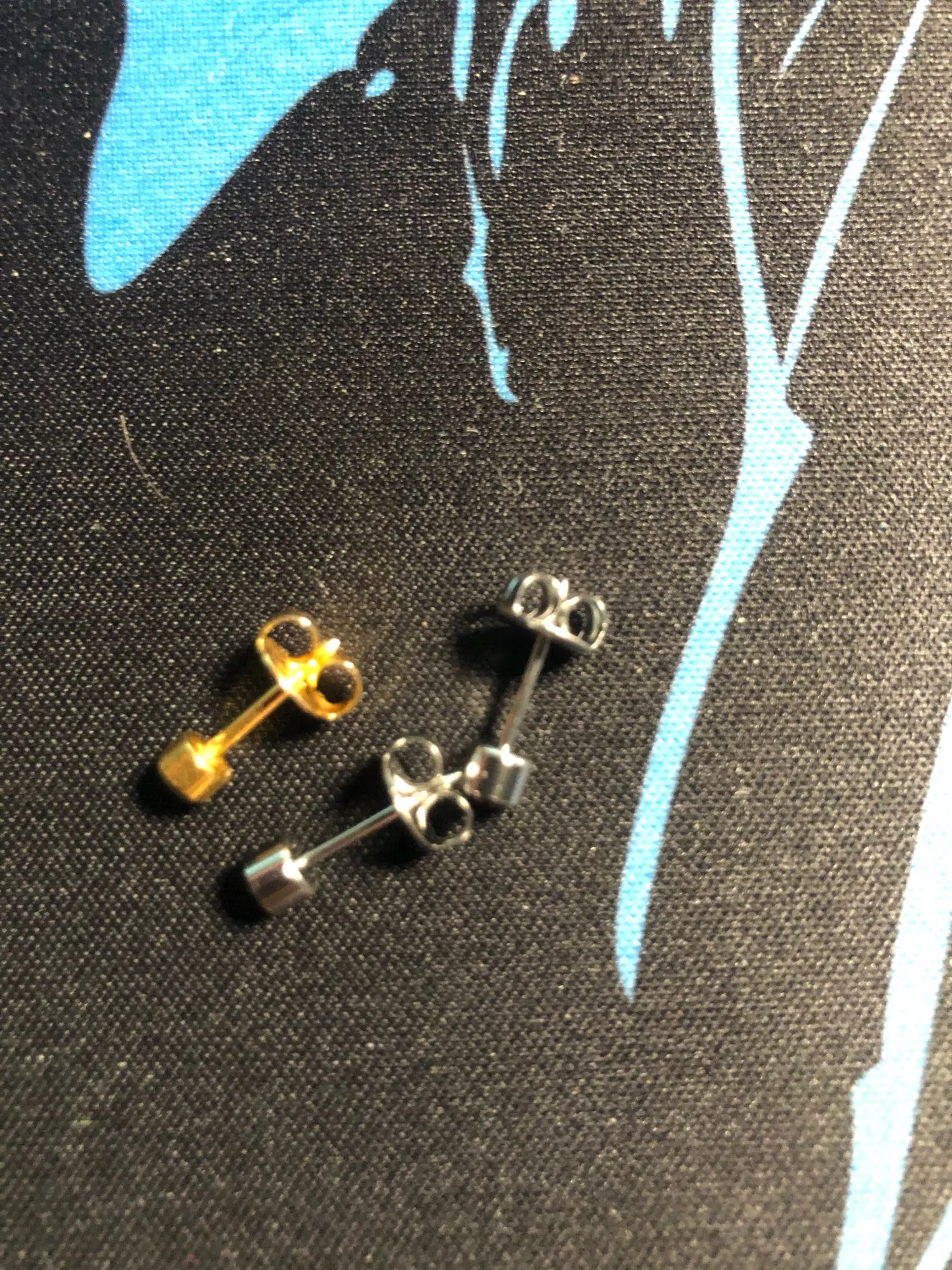 Серьги отличные! похожи на те, которыми в салонах прокалывают, только побольше выпирают и цепляются волосы. ношу постоянно, недели 3 наверно, купаюсь в них, не почернели и пока не собираются))) рада покупке! Спасибо