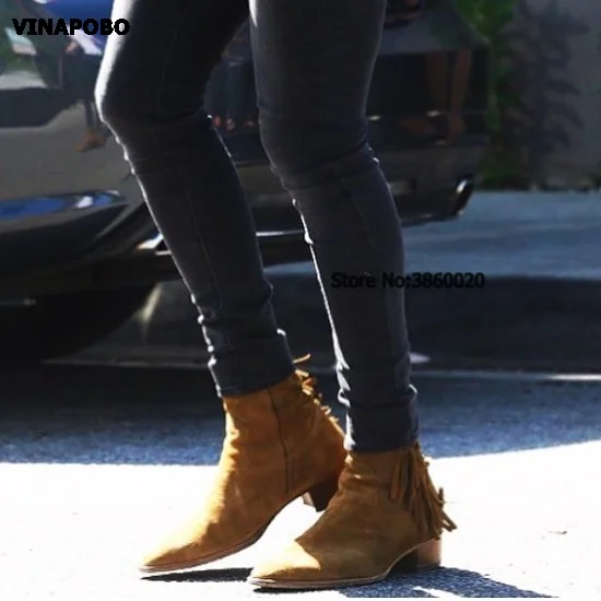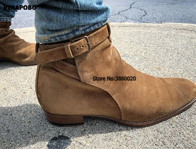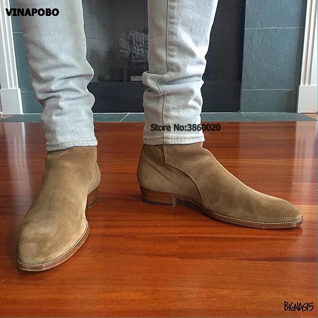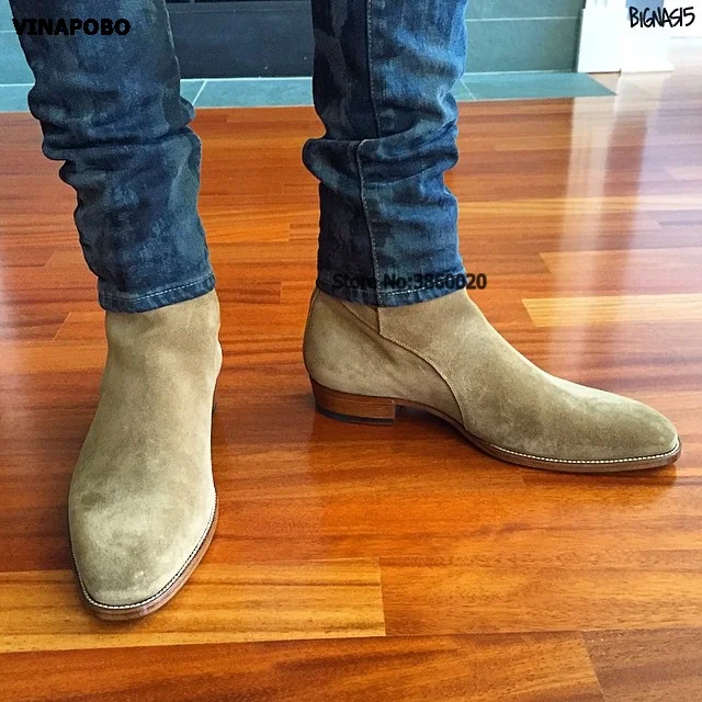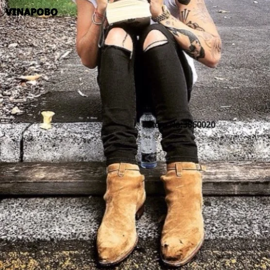 Мужские замшевые ботинки с пряжкой VINAPOBO, черные ботинки челси без шнуровки, модные ботинки средней длины для осени, 2018