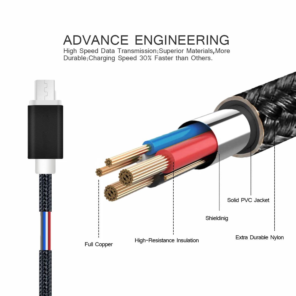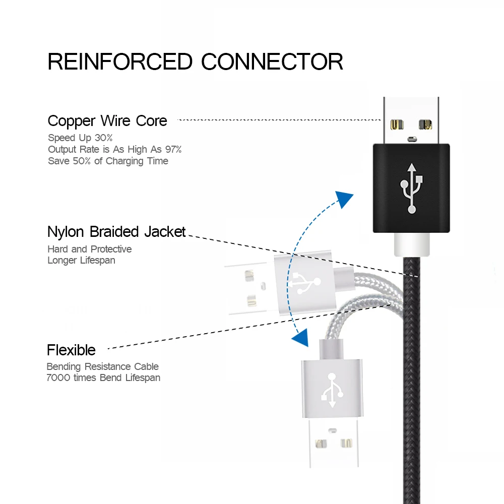 5 упак. Micro USB быстрой зарядки для samsung 1 м 2 м 3 м кабель синхронизации данных Шнур для huawei xiaomi Android мобильных телефонов Зарядное устройство 5V2. 4A