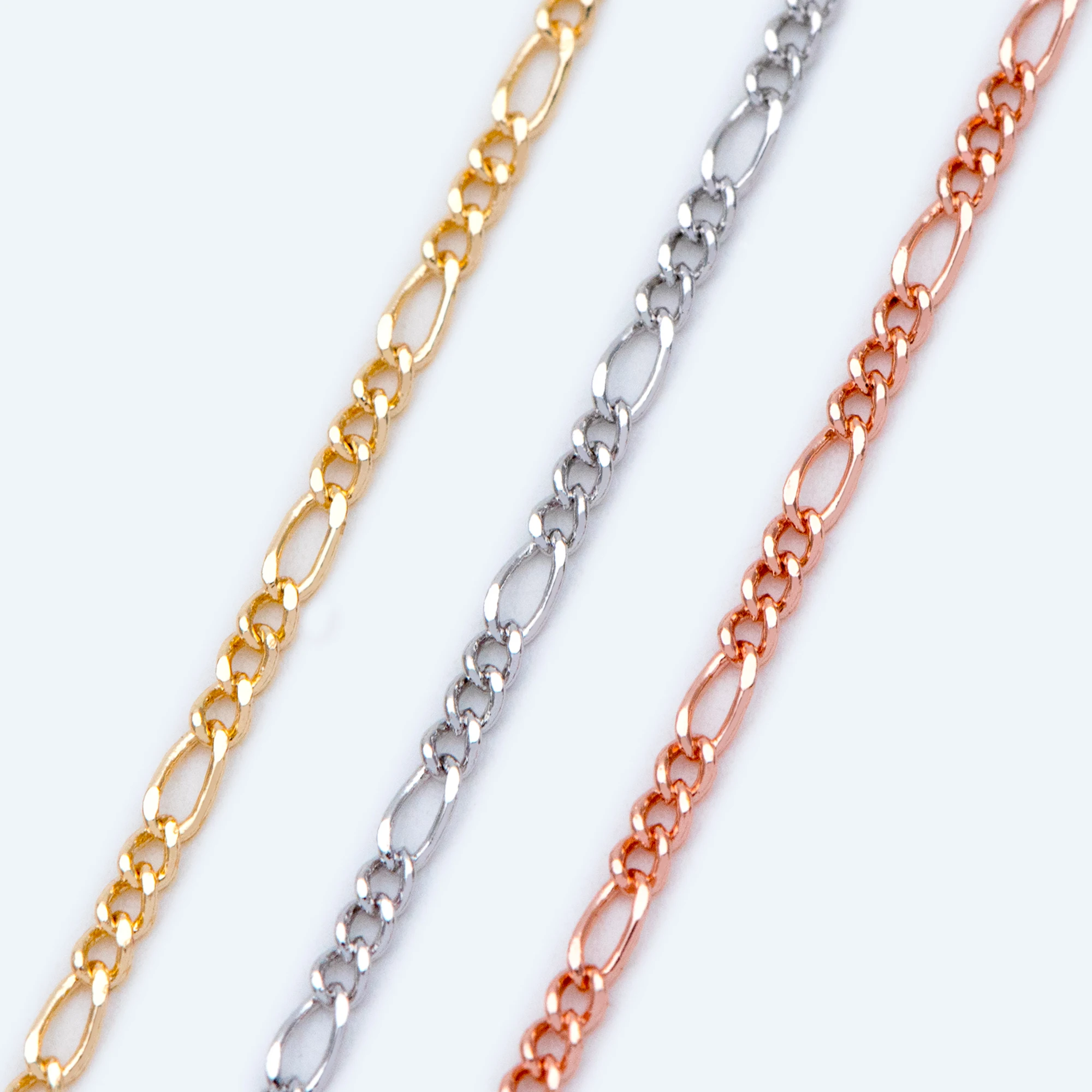 Плетеная цепочка Фигаро золотогосеребряногорозового золота, латунь с настоящим золотомродиевым покрытием, устойчивая к потускнению, Ювелирная фурнитура сделай сам