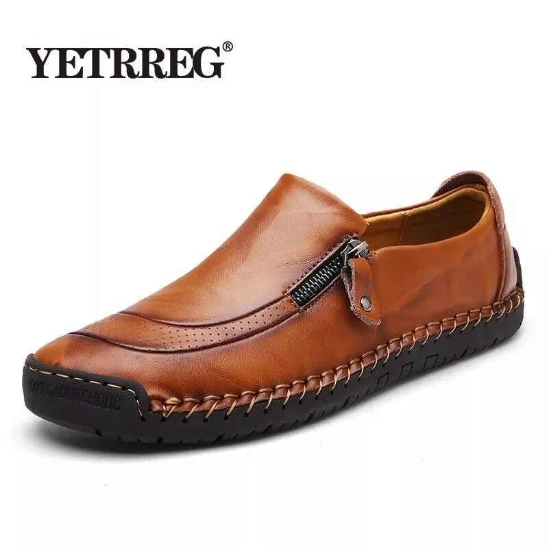 Мужские лоферы из натуральной кожи Vancat, коричневые Повседневные Дышащие лоферы на плоской подошве, обувь для вождения, большой размер 38-48, 2019