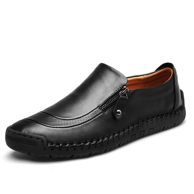 Лоферы мужские из натуральной кожи, на плоской подошве, на молнии, ...