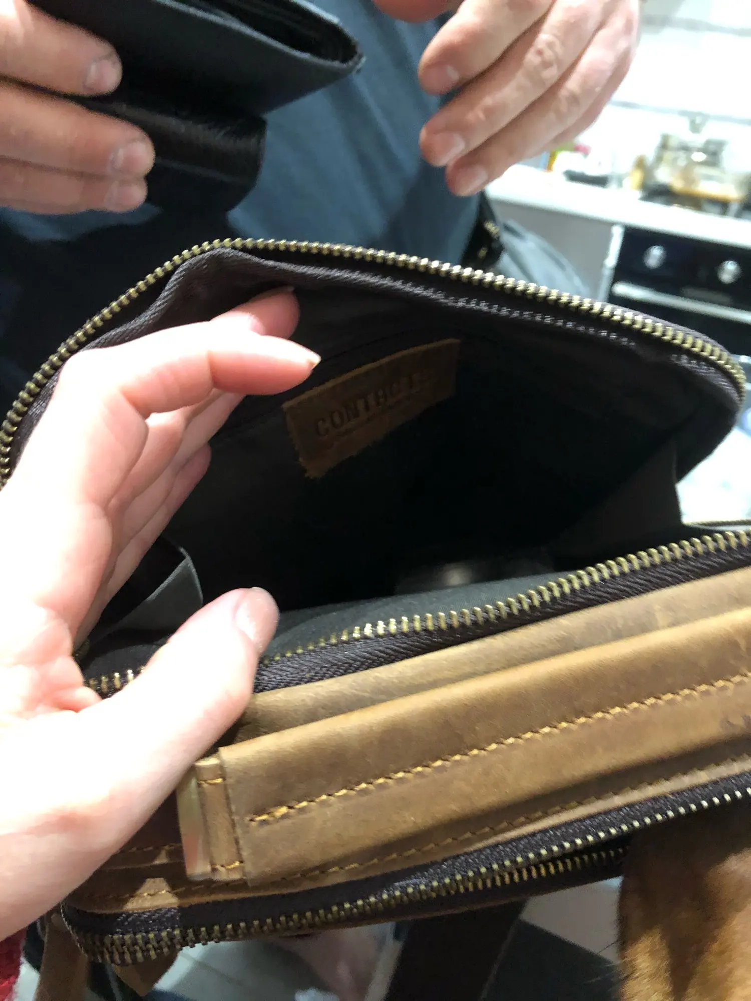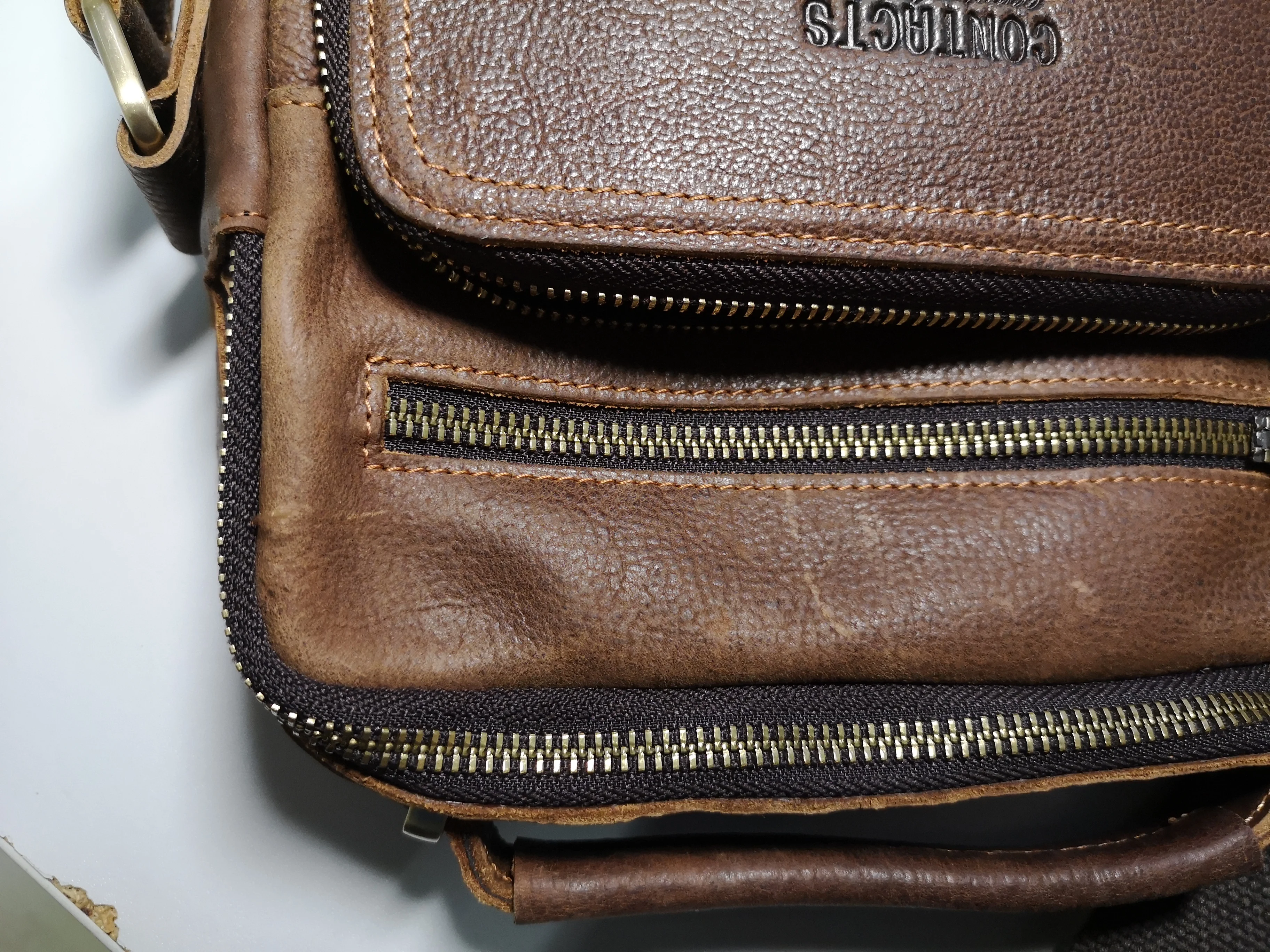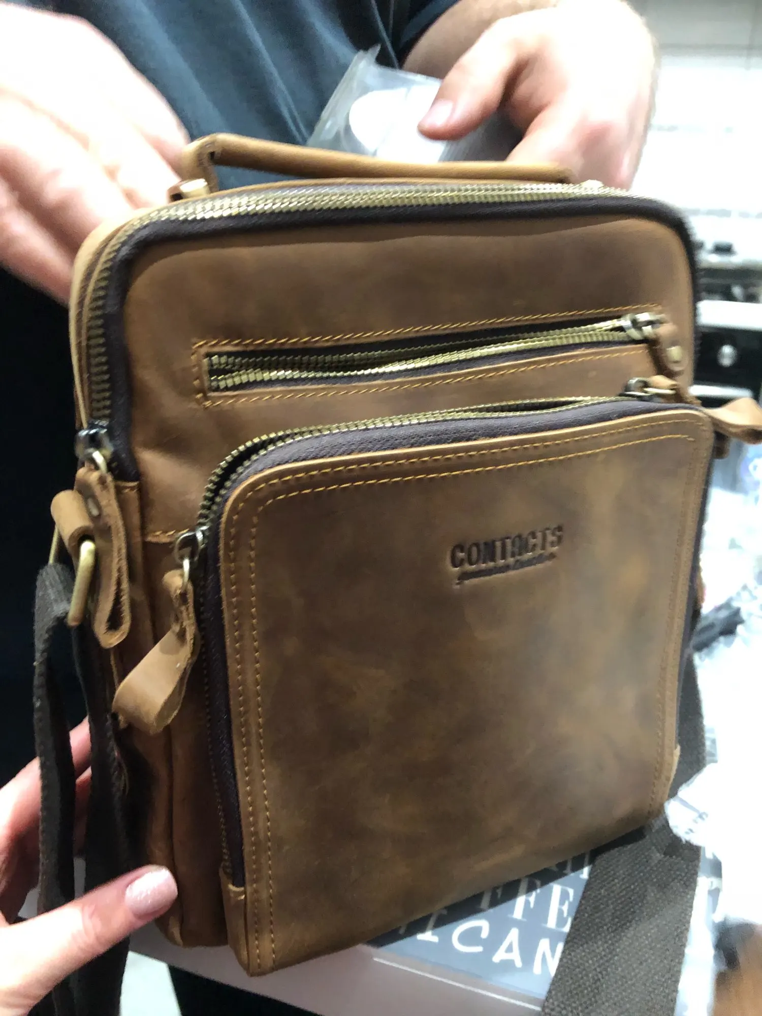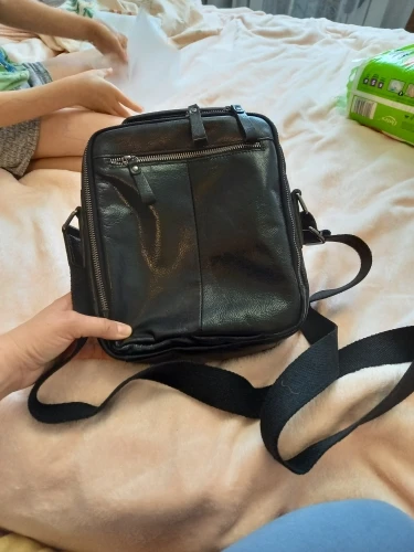 Доставка очень быстро доехала, за 15 дней с момента заказа!!! Продавец упаковал очень хорошо, текстильный пакет, потом пупырка, сверху целофан. Внутри воздушные пакеты и вспененный полиэтилен. Сумка отлично пошита, кожа натуральная хорошего качества, карманов много! Ручка из хлопка, не съёмная, на рост 195 см коротковата, малехо не продуманно как по мне. Фурнитура металл, молния отличная, собачка на вид так себе. В целом впечатления от этой сумки очень положительные, сумка достойная. А с учётом того, что с купонами обошлась в 32,5 доллара, то вообще огонь!!! У нас такие в два раза дороже!