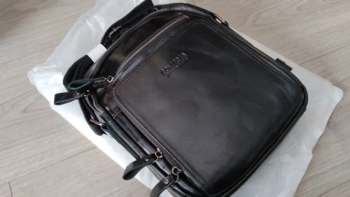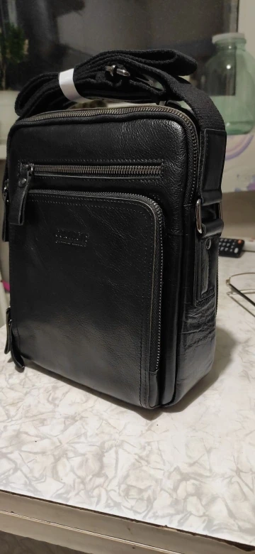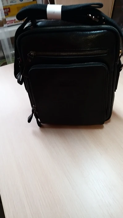 Очень быстрая доставка , приятно удивлён . Качество товара очень хорошее . Пахнет кожей - фактура кожи одинаковая на всей поверхности сумки . Выглядит лучше чем на фотографии . Швы ровные , аккуратные . Молнии работают без нареканий . Полностью соответствует описанию . Придраться не к чему . Ну вот разве что ремешок на 20 сантиметров подлиннее . P.S. Очень-бы хотелось побольше внутренних карманов , для визиток , пластиковых карт на внутренних стенках между отсеками, так-как размер сумки позволяет.