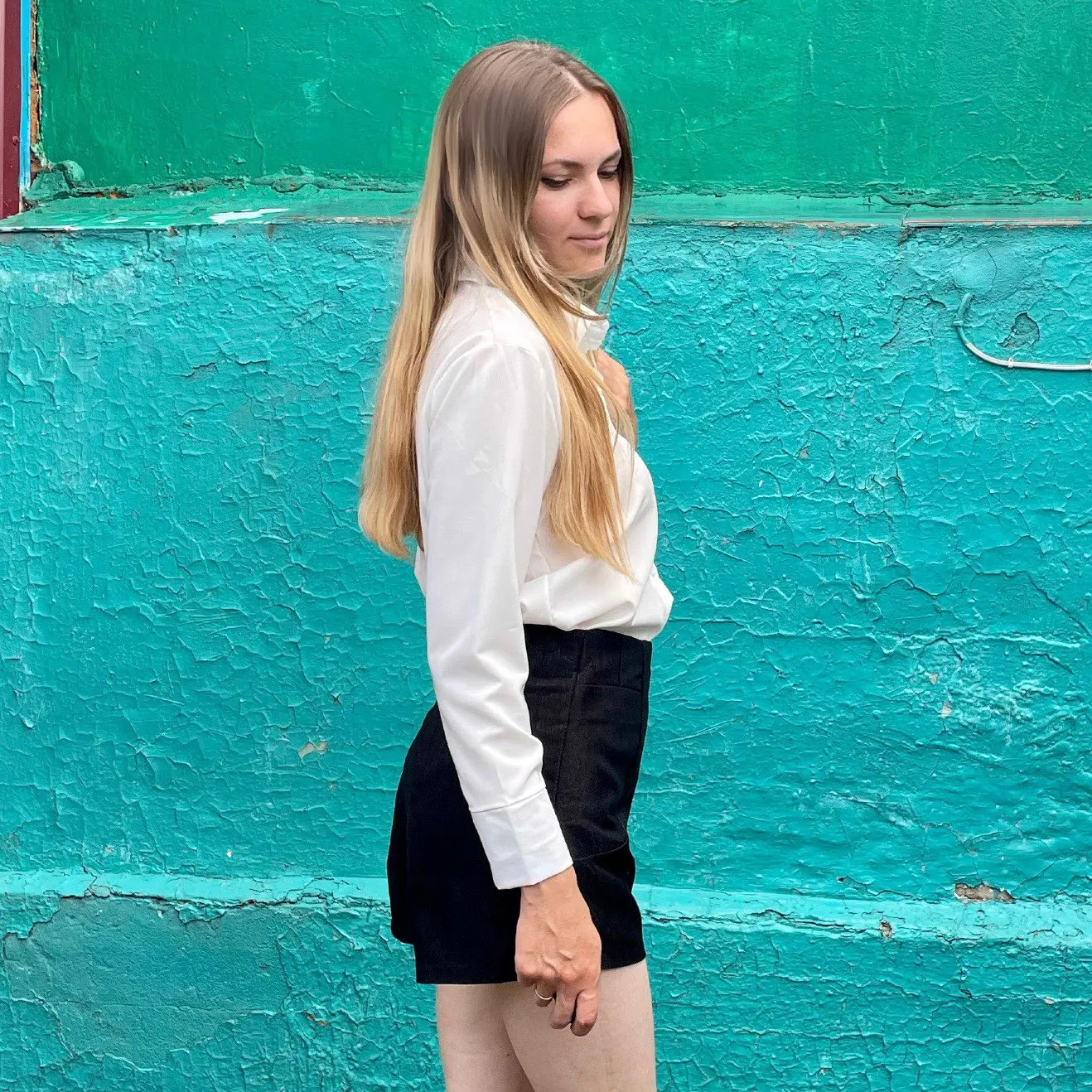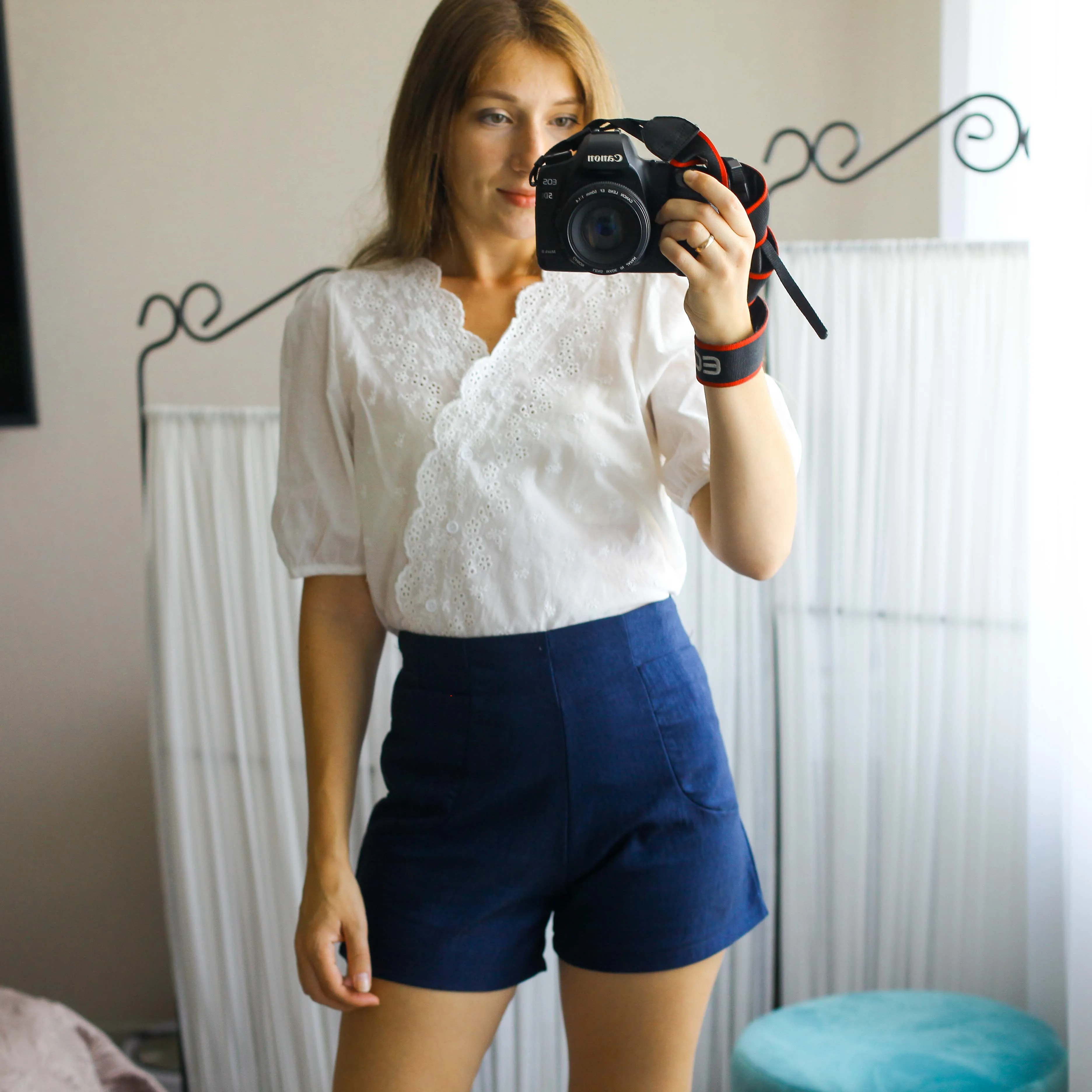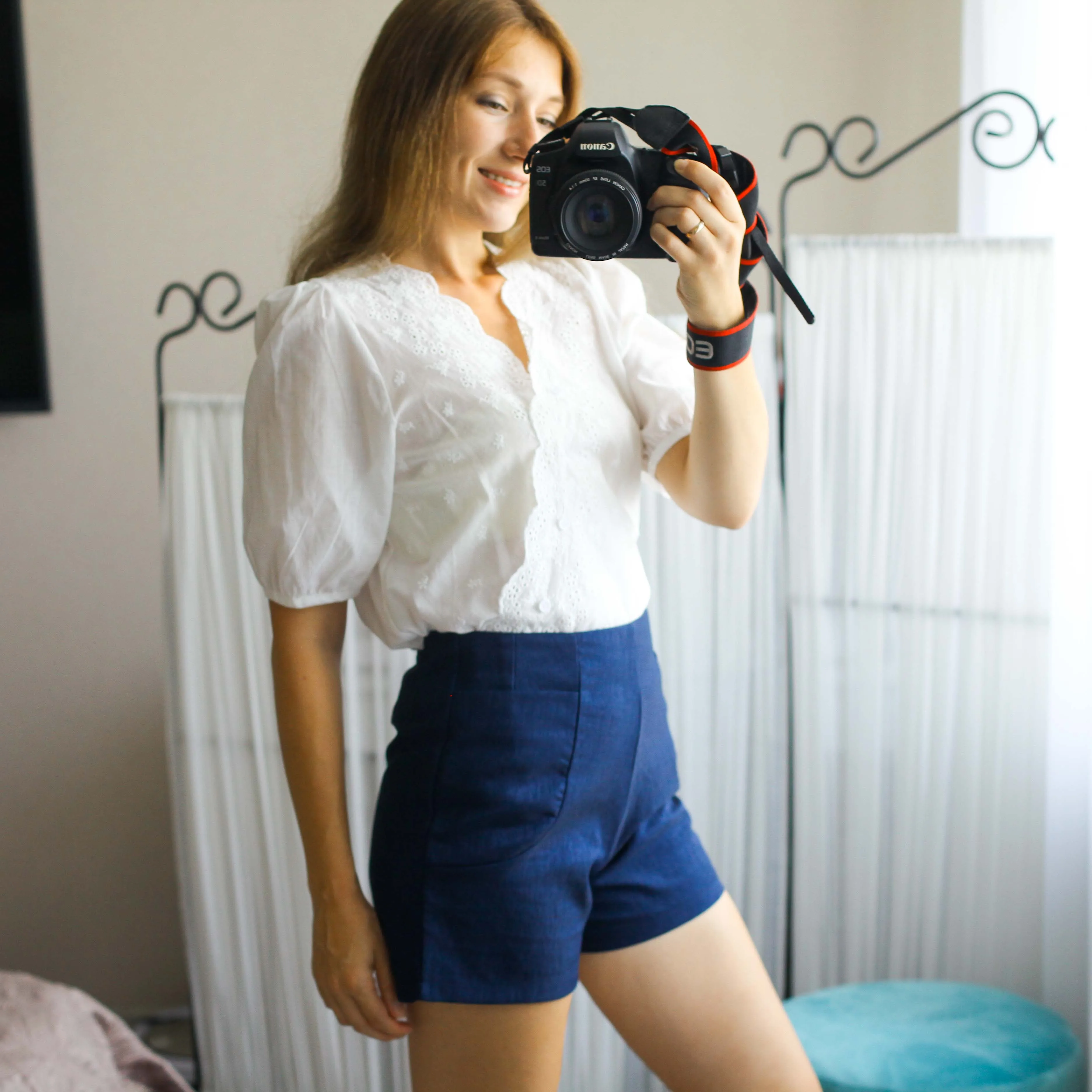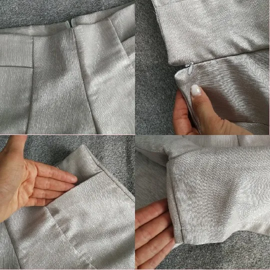 шорты очень понравились. сидят отлично размер S. Ткань чуть тянется, по бокам карманы. Застежка потайная молния сзади. Высокая посадка. Визуально ноги вытягивает. Цвет белый , на лен похожа ткань немного. Доставка 3 недели. Брала для моря. Очень комфортно в жару. Советую. Thank you❤