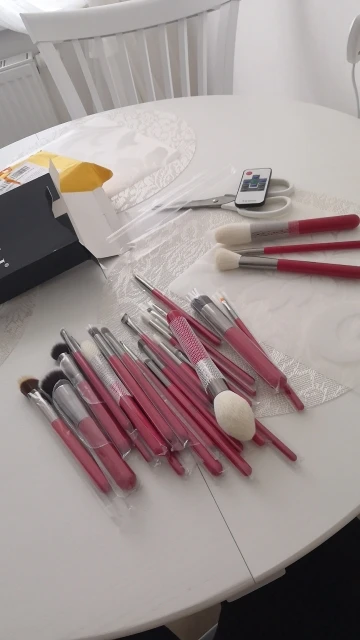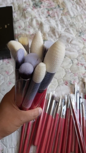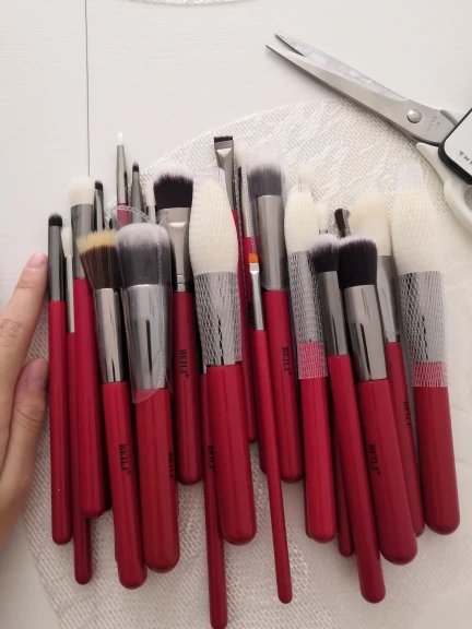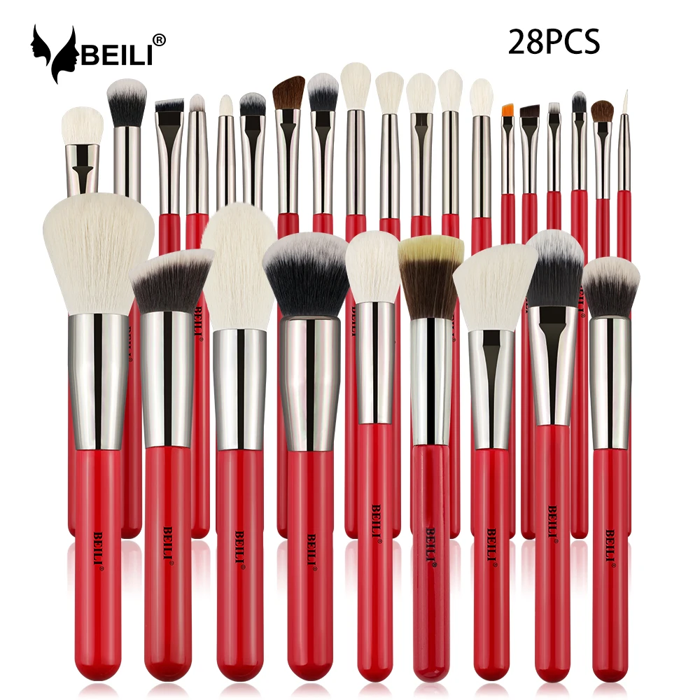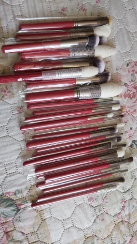 В набор кистей для макияжа 28 шт. входят тени для век, подводка для глаз, брови, пудра, румяна, основа, губы.1. Деревянные ручки поставляются с экологически чистых фабрик. Наша компания верит, что красота также включает внутреннюю красоту.2. Чистые синтетические волосы легко окрашиваются и не впитывают жидкость или порошок. Это веганских материалов.3. Натуральные кисти для волос изготовлены из натуральных волос. Ни одно животное не ранено во время этого процесса.
