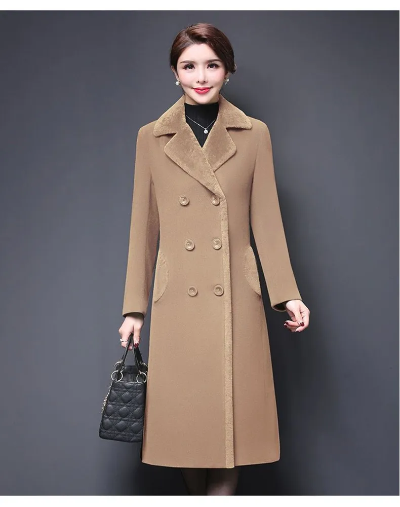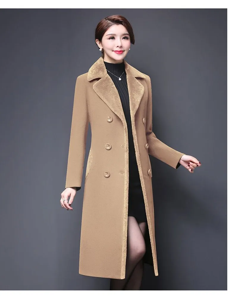 M-5XL новое женское пальто из смесовой шерсти осень-зима 2022 мода мать утолщенный кашемировый воротник длинная куртка теплые тонкие топы верхняя одежда женская