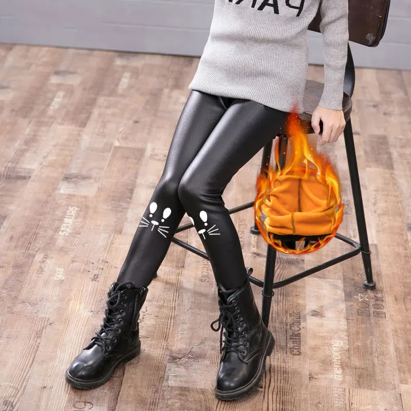 Теплые леггинсы из искусственной кожи для девочек; Плотные штаны для детей; Рождественские Брюки для малышей; Детская водонепроницаемая одежда для маленьких девочек