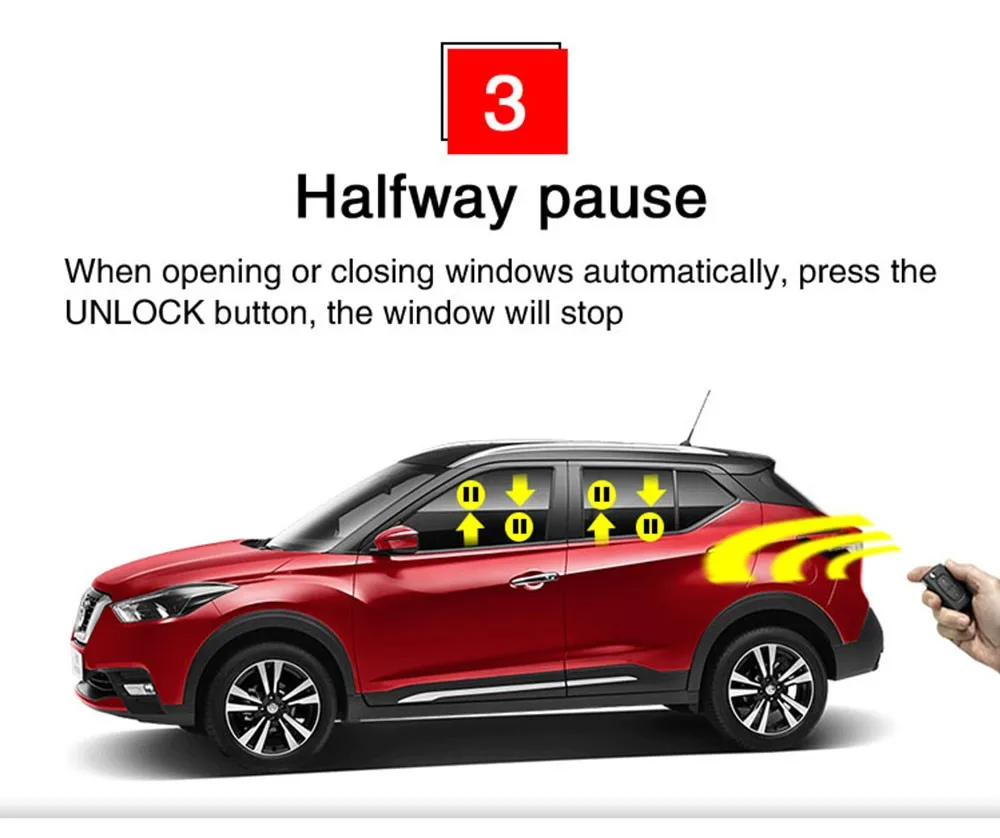 После того, как все окна будут закрыты автоматически, подождите 10 секунд (чтобы завершить процесс закрытия окна), разблокировка-Блокировка-разблокировка в течение 4 секунд, окна будут открываться автоматически два на два (сначала спереди 2 окна, затем сзади 2 окна).