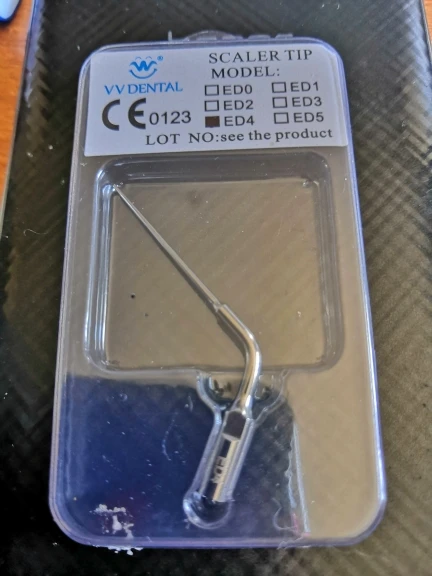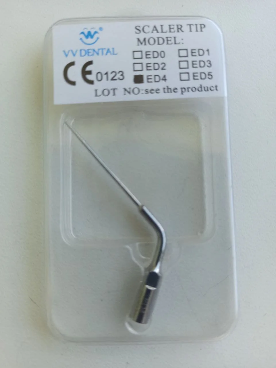 Насадка (наконечник) стоматологического скалера ED4, эндо, разъем SATELEC. ПРОИЗВОДИТЕЛЬ : VV Dental (оригинальный). Предназначена для использования при чистке корневого канала ультразвуковым пьезоэлектрическим скалером от наполнения и посторонних материалов. Совместима с SATELEC,woodpecker DTE, Henry Schein S-series, Gnatus. Хороший качественный продукт и быстрая доставка, но упаковка таких вещей желает лучшего. Товар и продавца рекомендую