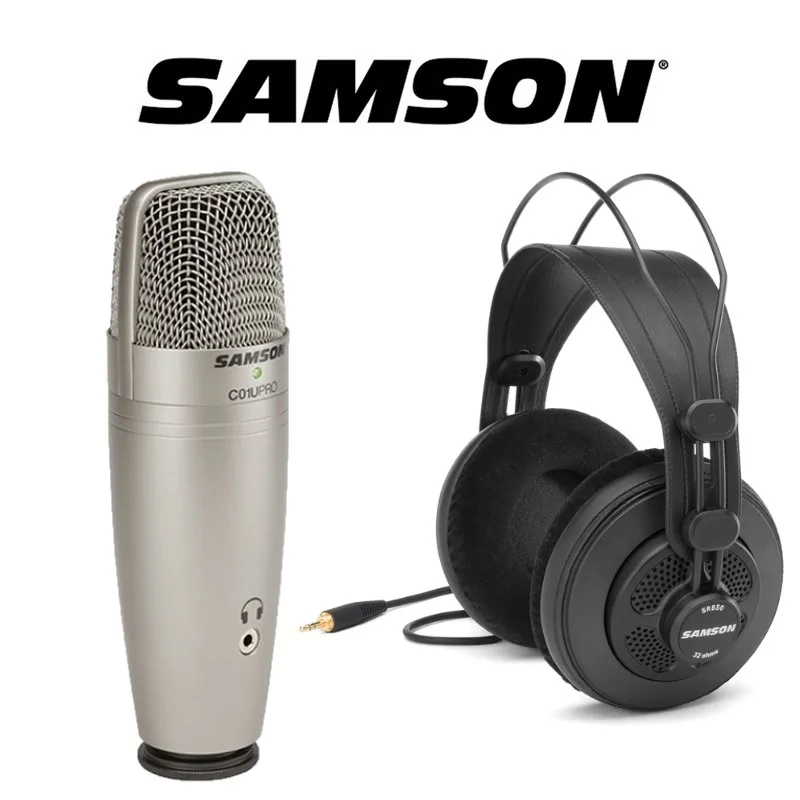 Микрофон SAMSON C01U Pro (наушники Samson SR850), конденсаторный USB-микрофон для студийной записи музыки, звукозаписи и видео