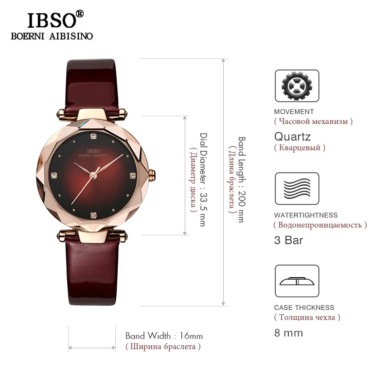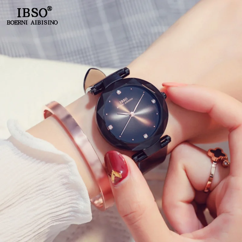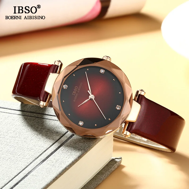 Топовый бренд 2019, Роскошные Кварцевые часы IBSO, женские часы со стразами, женские модные часы с кожаным ремешком, женские часы # S8292L