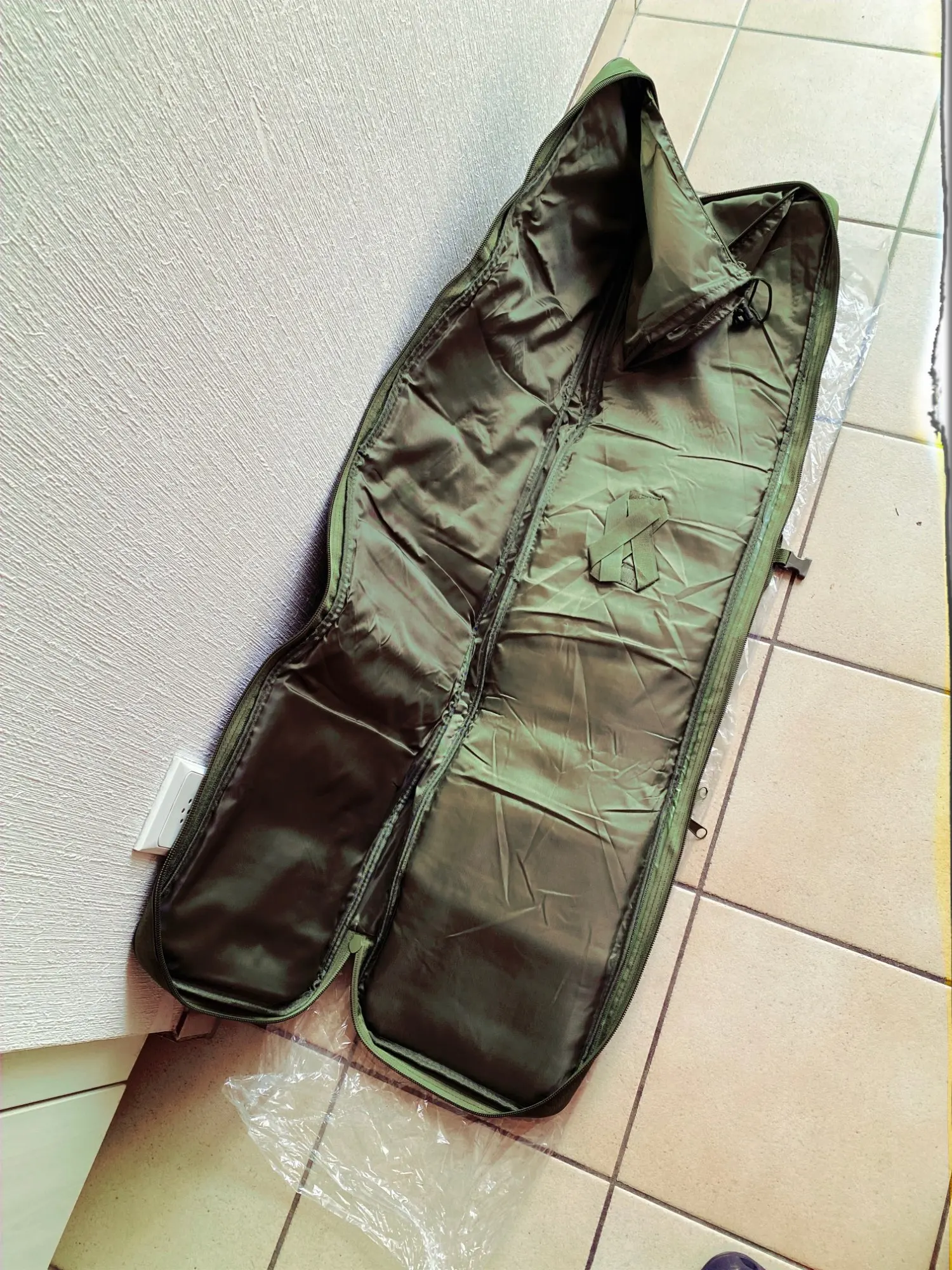 Наконец получил чехол, ждал долго, до Алматы почти два месяца шло. Брал 95 см для Крюгера(80 см), размер подошёл, запас 5 см. Прошито не очень аккуратно, торчащие нитки бесят. Хотя внутри прошито всё аккуратно. Внутри имеется паролон тонкий, конечно лучше чем был бы просто материал. Много разных карманов радует.