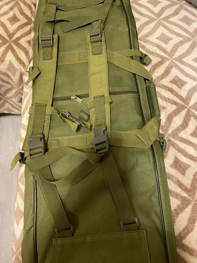 Чехол очень понравился. Шикарная молния, которая очень тихо открывается, брал для ночных охот под карабин. Нитки торчат кое-где, но за такие деньги и такой функционал это просто супер. Под длину 112 см карабина брал чехол 120см, помещается с запасом с оптикой, даже с ночной.