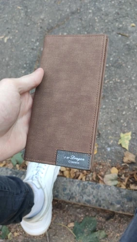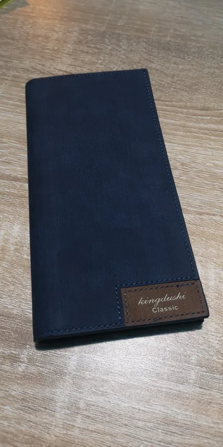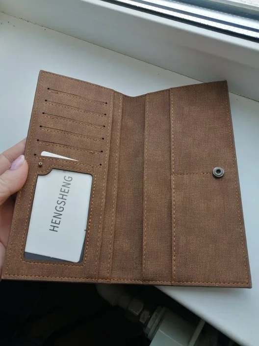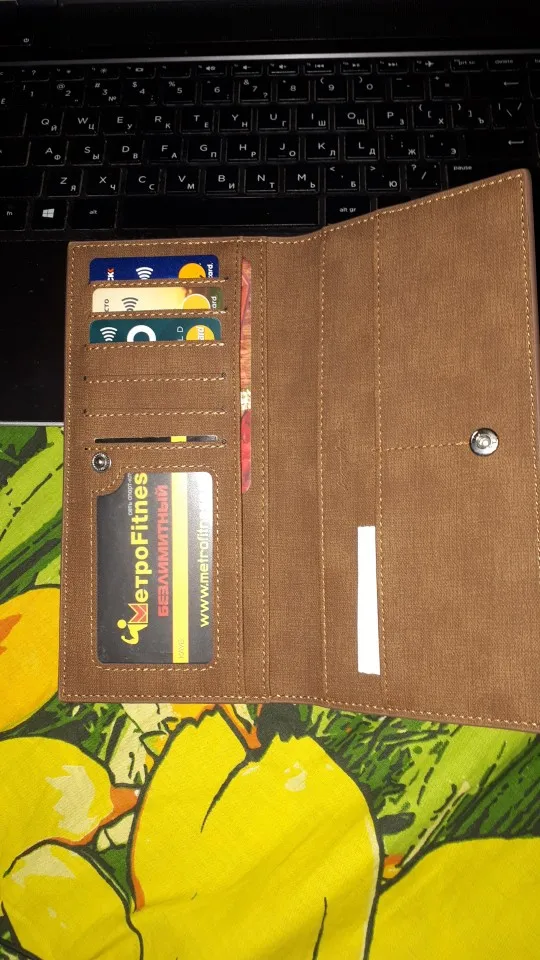 Хороший бумажник. Нет отдела для монет, что лично для меня большой плюс. На ощупь очень приятный, застёгивается на внутреннюю кнопку.