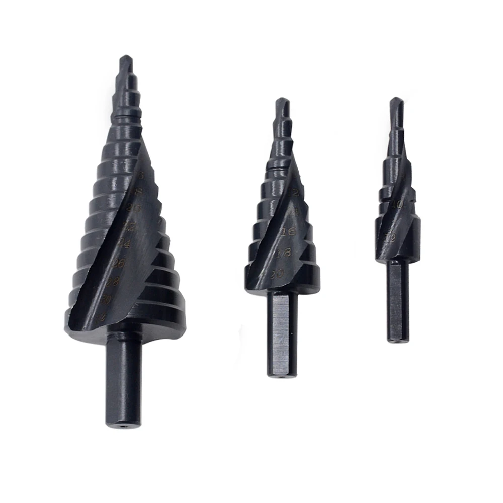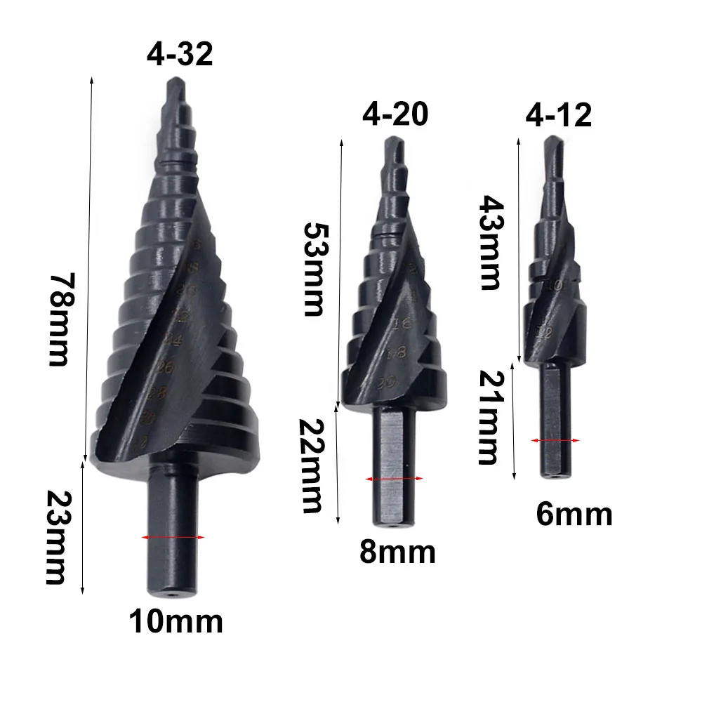 Спиральные рифленые ступенчатые сверла с титановым покрытием из быстрорежущей стали, набор конусообразных ступенчатых сверл 4-12 4-20 4-32 мм, 3 шт.лот