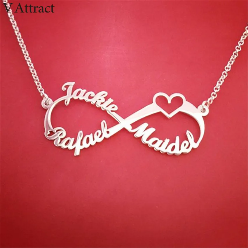BFF ювелирные изделия, персонализированное ожерелье с кулоном в виде знака бесконечности, очаровательное колье в форме сердца, персонализированное ожерелье вечности для пар с именами семьи
