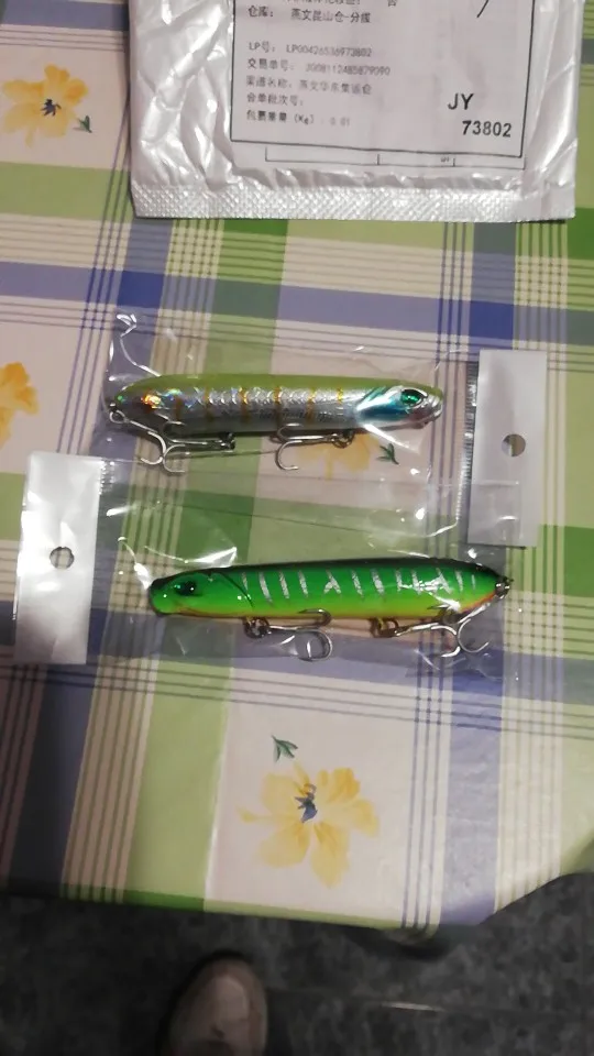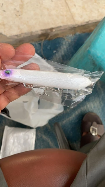 Приманка выглядит хорошо, точный вес к описанию, единственное, что пришло немного плохо закончено в краске во рту, что не влияет ни на что, это просто эстетично, вы должны попробовать это и посмотреть, какие результаты это дает, очень быстрая доставка!