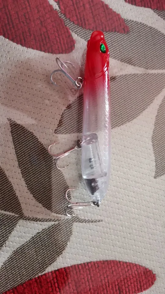 Отличный поппер. Средний тройник снимаю. Он бывает цепляет соседние. Летит очень далеко. Играет прекрасно, но надо научиться проводке. На задний тройник добавляю опушку. Все петли обязательно проклеивать. В этом году разловлен жерехами и окунями.