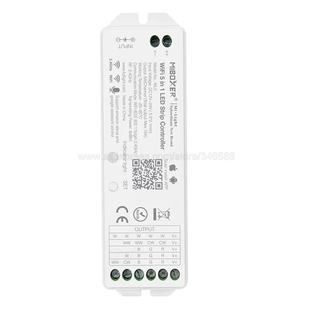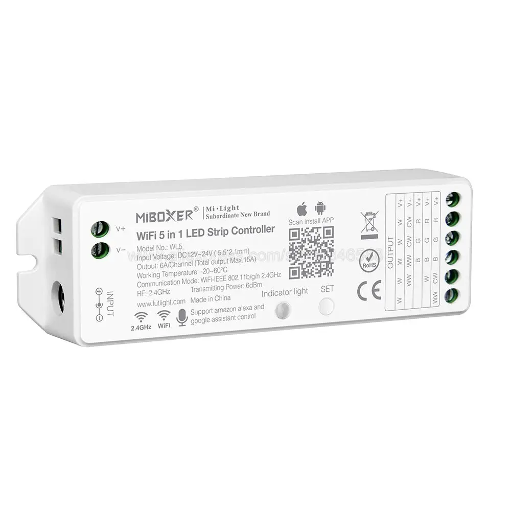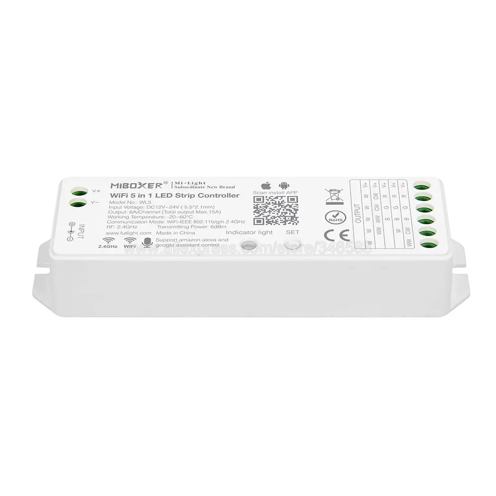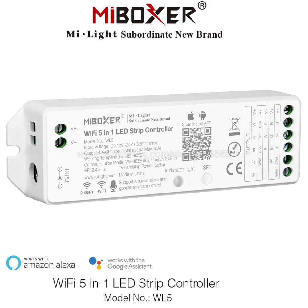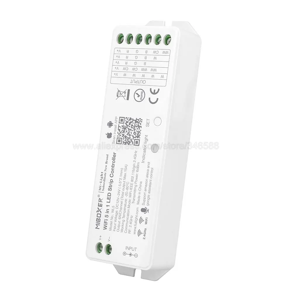 MiBoxer WL5 5 в 1 Wi-Fi светодиодный контроллер для одноцветного, CCT, RGB, RGBW, RGB + CCT Светодиодная лента с поддержкой Amazon Google Голосовое управление