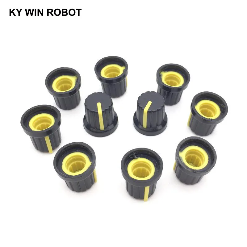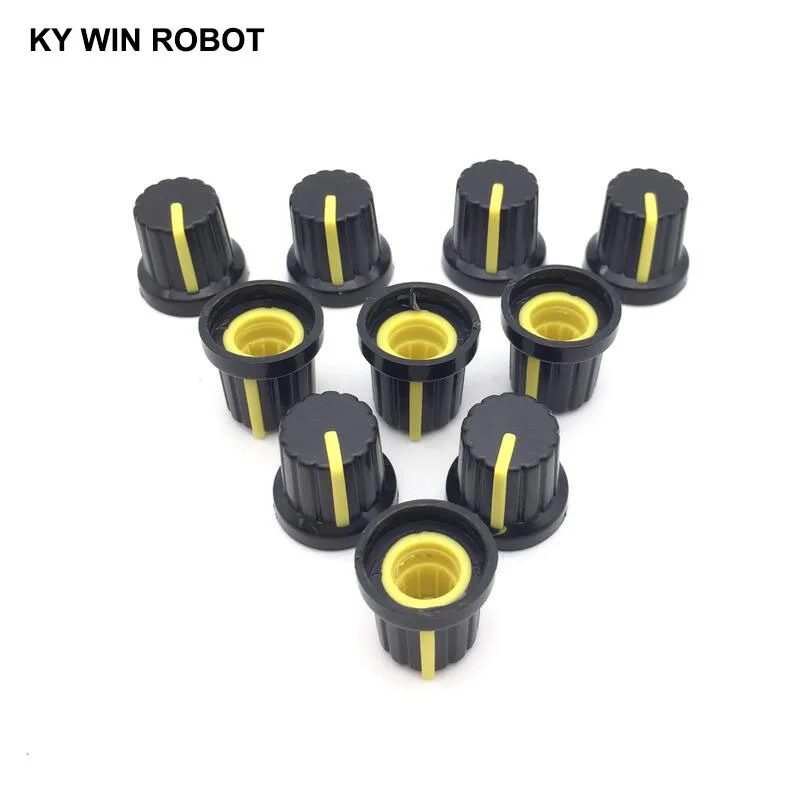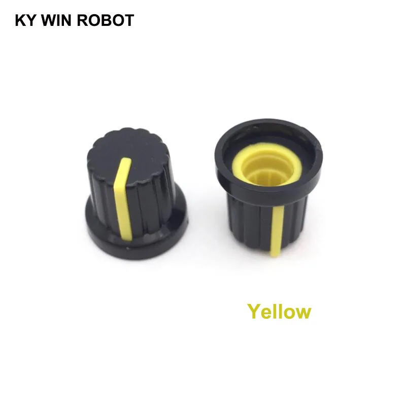 10 шт.лот желтые регуляторы громкости поворотные ручки для прочного рифленого вала диаметром 6 мм