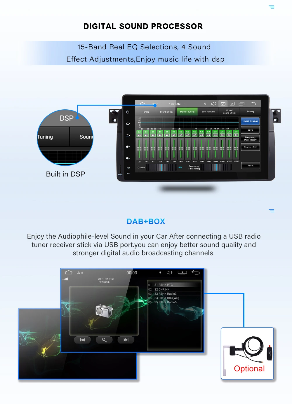 Support1280P ,4G DAB+ OBD2