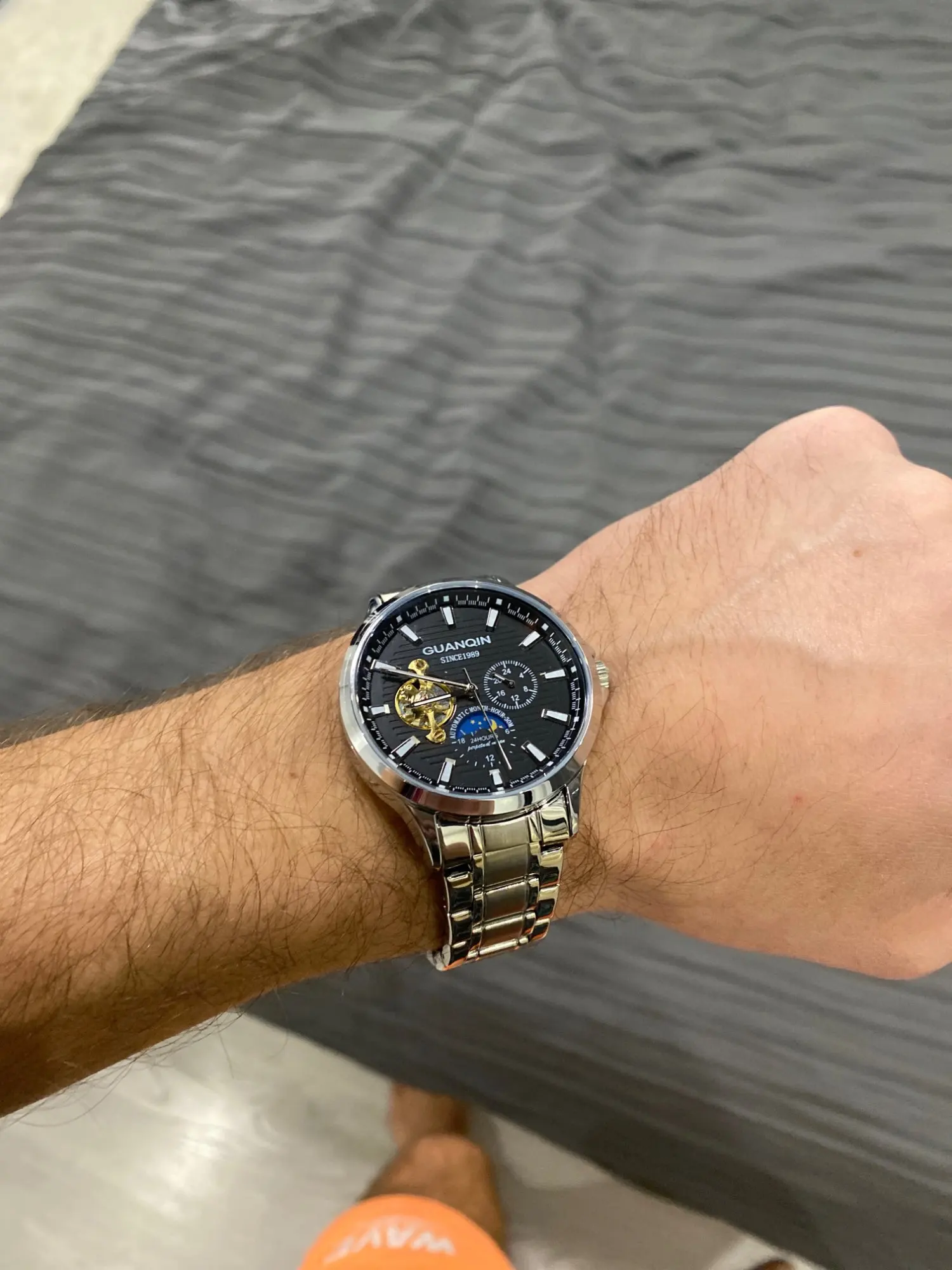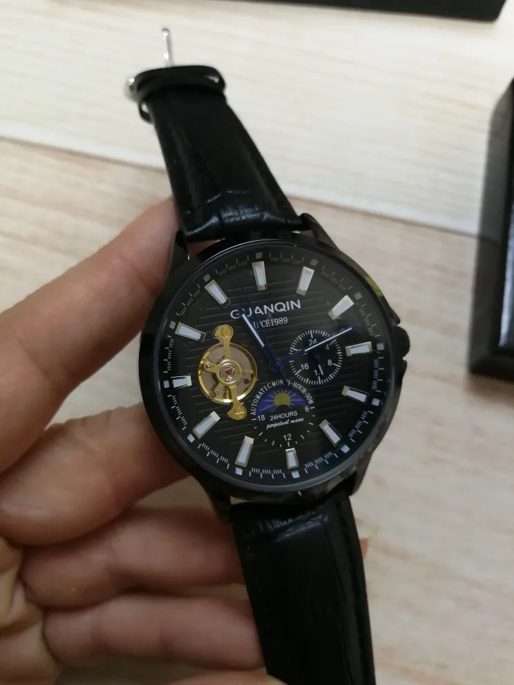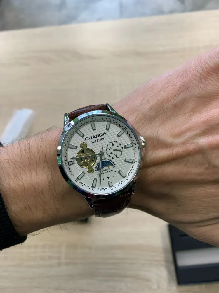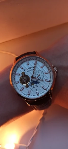 Роскошные Механические часы Привлекательные красивые легкие цветные Удобный кожаный браслет Отличная упаковка хорошо работает Доставка Вовремя в мой Алжир Я рад и благодарен магазину и настоятельно рекомендую купить у него Я оставляет пять звезд.✅И я оставлю дополнительный комментарий позже.