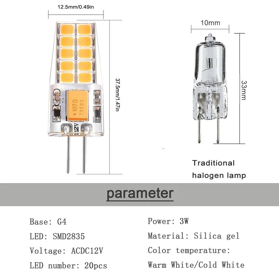 Супер яркая светодиодная лампа G4, SMD2835, 12 В, 3 Вт, угол 360 градусов, светодиодная лампа, светильник Хрустальная люстра, заменяемая галогенная лампа 30 Вт