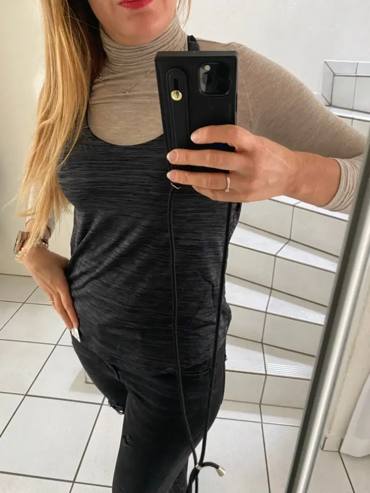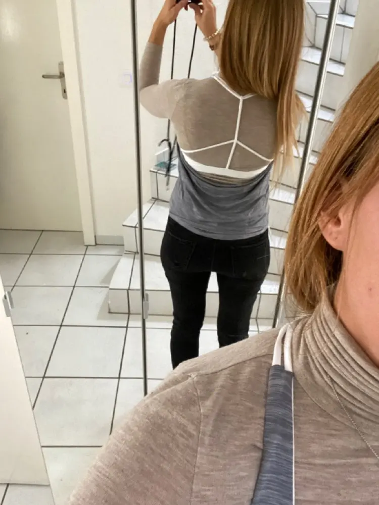 Очень классная майка. Комфортная, красивая, аккуратно сшита. Топ с чашечками, держит грудь. Красивая спинка:)