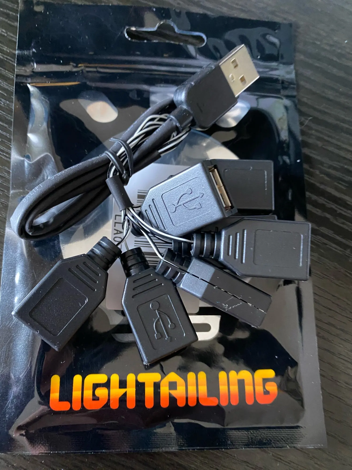 Товар прибыл хорошо. Я не обращал внимания на то, что я заказал, я думал, что пакет также включает световые пятна, но это только usb-кабели. Но в любом случае, выглядит как хорошее качество.