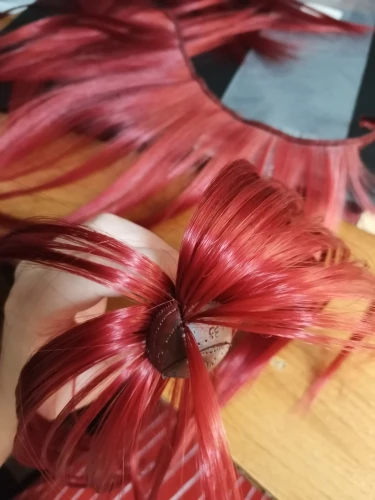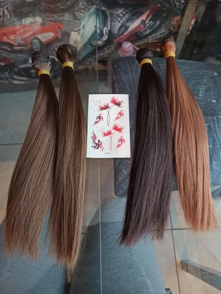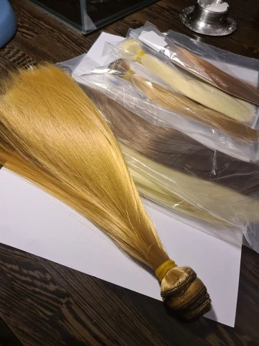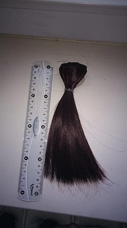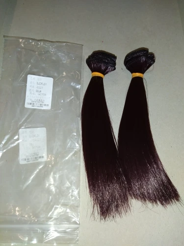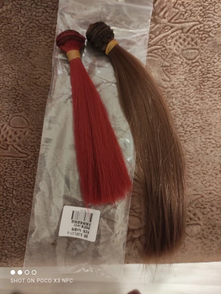 Выбрала недорогие волосы для первой прошивки. Цвет, как на фото - красное дерево, очень блестящие, жестковатые. Из минусов: Прядки не равномерные - то толстые, то тонкие. Прошиты чёрными нитками, но мне без разницы, я нитки все равно отрезала.
