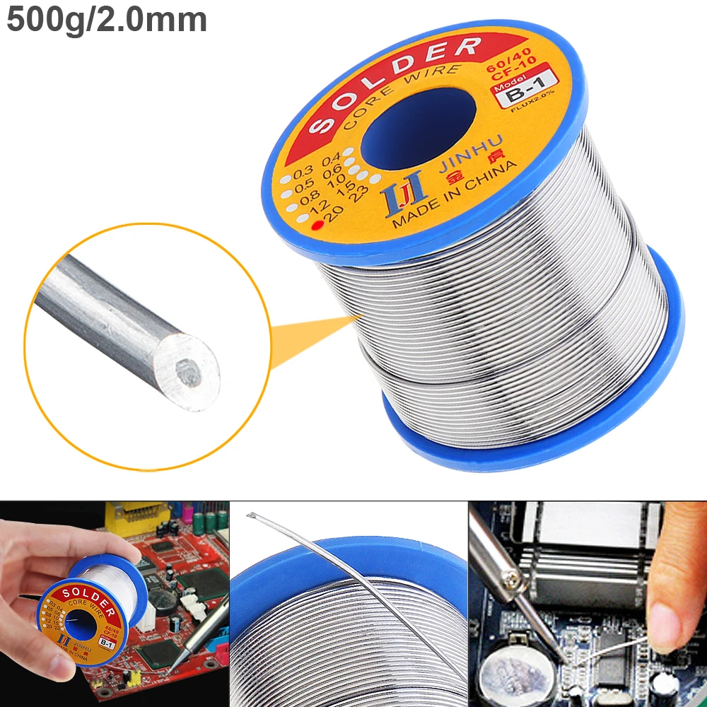 Неочищенный припой с канифольным сердечником, 6040 B-1, 500 г, 0,5 мм-2,0 мм, с флюсом 2.0% и низкой температурой плавления для электрического паяльника