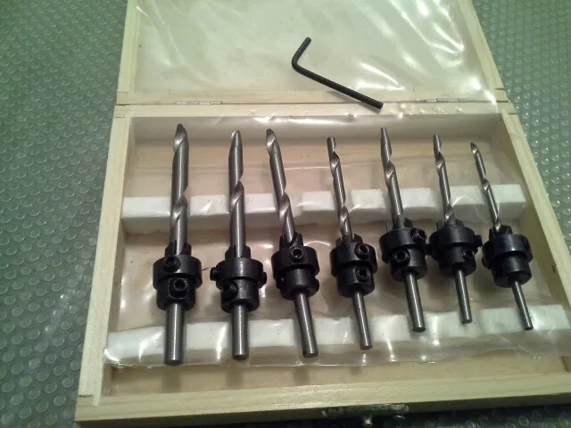 Сверла гавно!!!! Во первых очень сильно бьют когда сверлишь, сверлить только в станке если сверлишь тонким иначе если дрелью, то сломается, во вторых вообще тупые, в третьих не лезут в дерево с такой заточкой, зенковки которые установлены на сверлах что бы снимать фаски тонкие по отношению к самому сверлу, то есть если захочешь спрятать толстый шуруп то головка у него не залезет в потай. У всех зенковок внешний диаметр одинаковый а внутренний по сверлам что для тонких сверл что для толстых сверл потай получается одного диаметра. Короче сверла гавно. Пробовал просверлить березовое полено, на малых оборотах сверло не лезет на больших сверло просто сгорело!!!!!! Ну коробочка пришла целая, пришло очень быстро за 12 дней до Томской области.