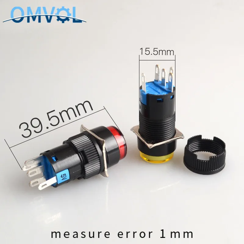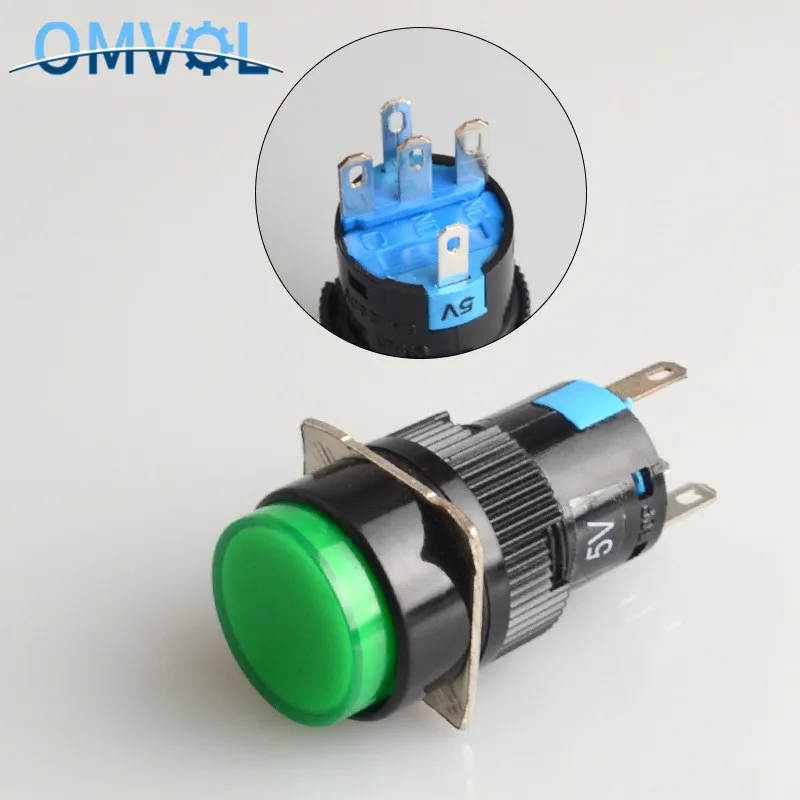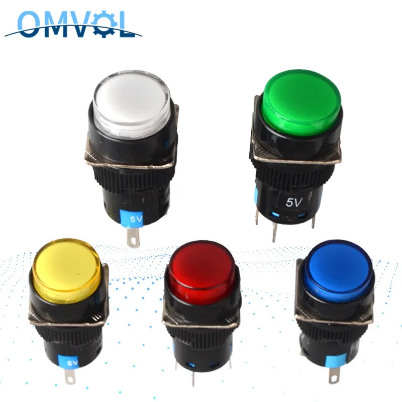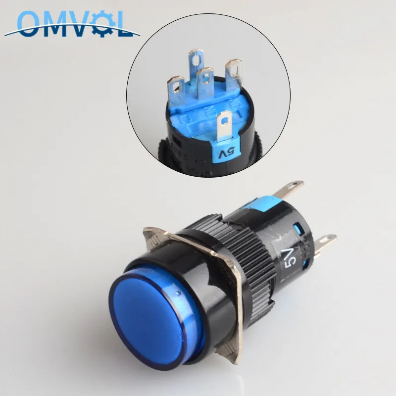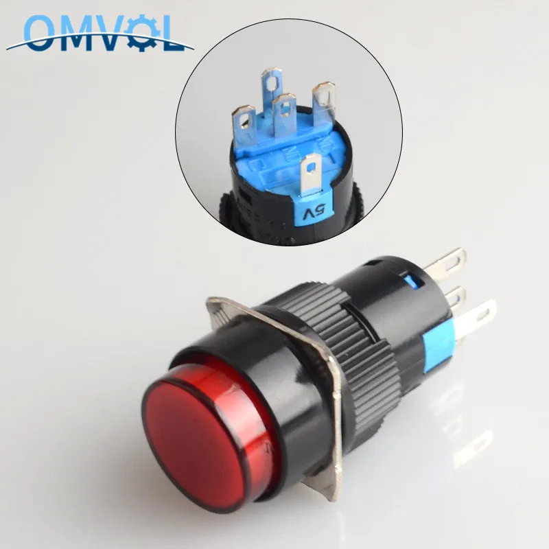 Круглый Мгновенный и самоблокирующийся кнопочный светильник, 1 шт., 16 мм, питание фонарика, 1NO1NC, 5 В, 12 В, 24 В, 220 В, сброс питания на 5 контактов