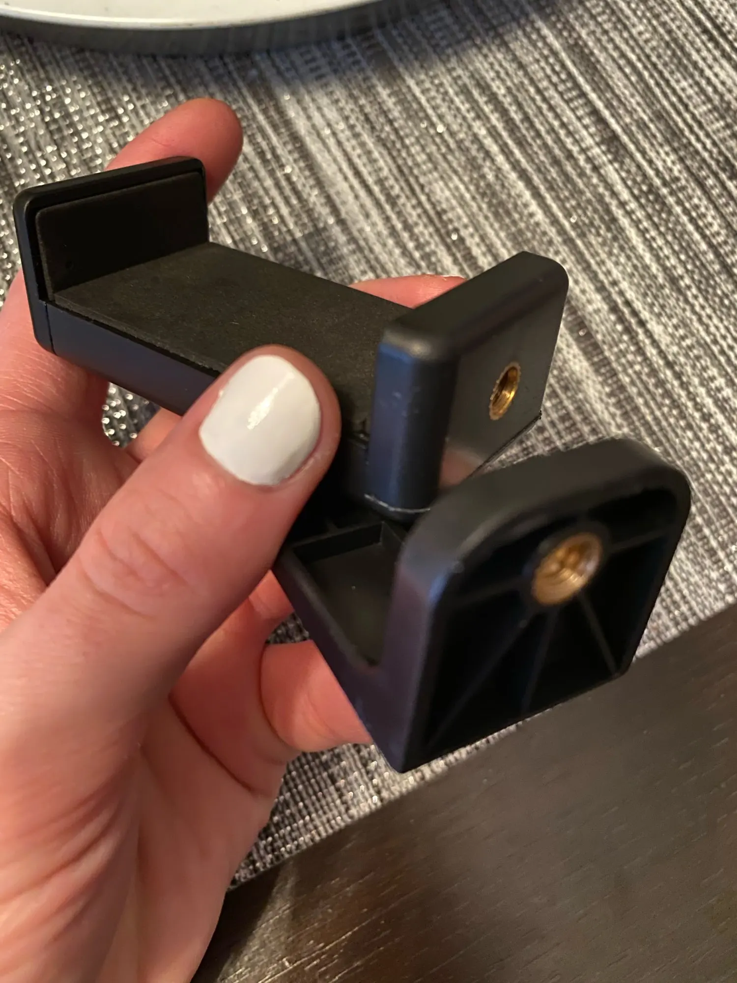 Удобный адаптер, все как в описании. Понравилось, что можно ставить телефон и горизонтально и вертикально. Поэтому и взяла. К моему старому штативу подошёл. Прям как родной! Уже испробовала в деле, могу сказать, что крепкий, отлично держит телефон. В общем, рекомендую всем))))) Everything is alright. I recommend the seller and the product. Good adapter.
