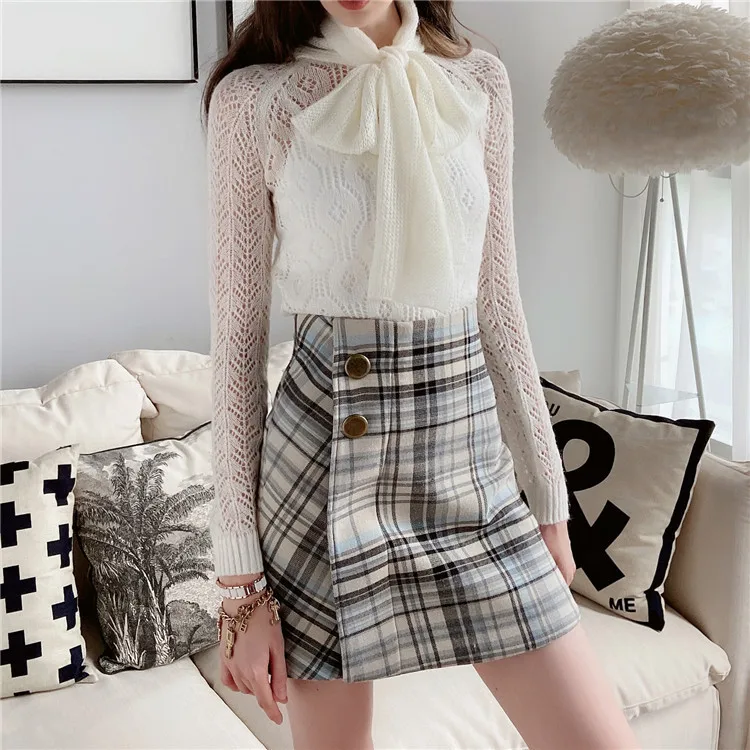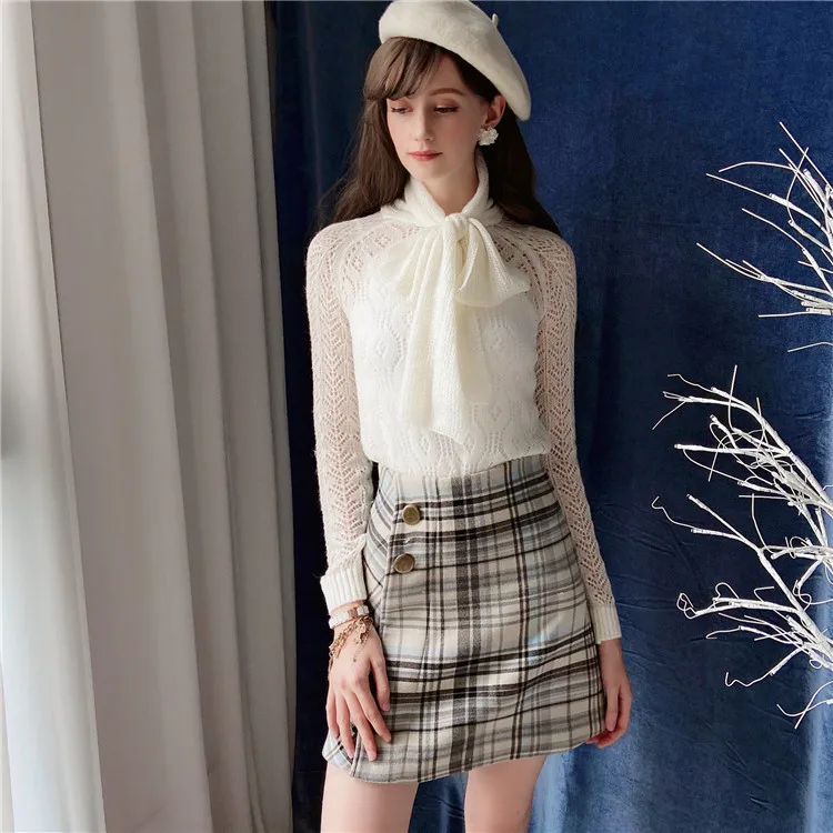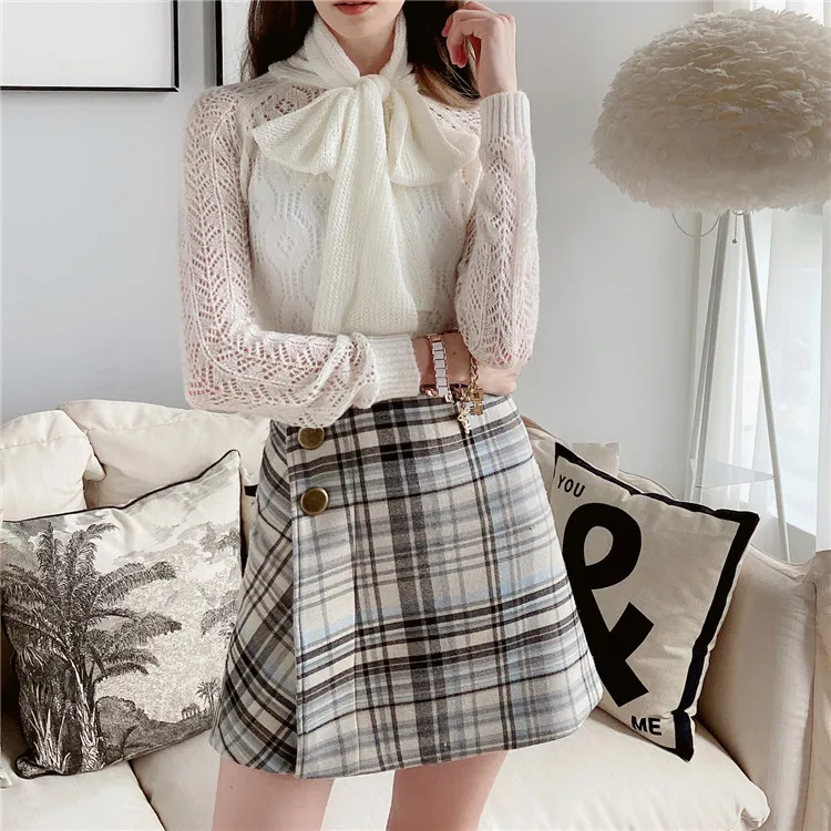 Демисезонная винтажная клетчатая юбка Dabuwawa для девочек, Офисная Женская Новая Серая трапециевидная юбка на пуговицах с высокой талией, D18DSK014