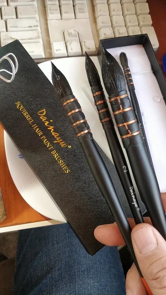Отличное качество. Сначала я испугался, потому что он выглядел довольно дешево, но на самом деле он может держать в большом количестве воды и краски. Он пришел в действительно приятную коробку. Он сделан из белки и очень мягкий. Меня немного пугает то, что он не очень прочный. В целом я доволен им.