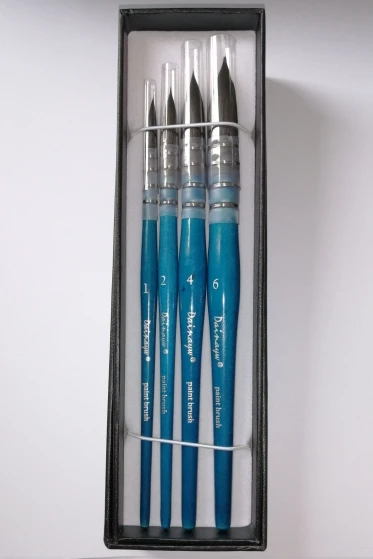 Очень хорошо, действительно натуральные волосы, не синтетические. Они сохраняют много воды, обеспечивают точность для их тонкого наконечника, и очень легко обрабатывать толщины, оказывая более или менее давление на бумагу. Большой размер идеально подходит для увлажнения всей поверхности бумаги и работы во влажной среде. Обратите внимание, что самый маленький размер, номер 1, он не сопоставим с обычным номером 1 в обычных круглых масляных или акриловых кистях, он довольно большой. Если вы хотите сделать очень тонкие линии или мелкие детали, вам нужно перейти к калиброванным щеткам другого вида. Они поставляются в картонной коробке с подкладкой и эластичностью, которая предотвращает их перемещение. Я бы, конечно, повторил.