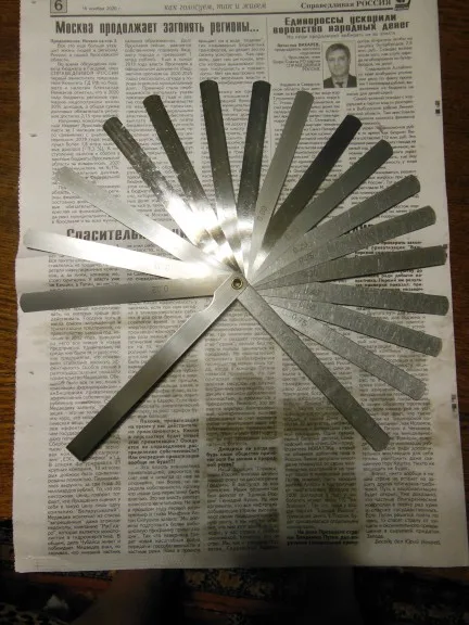 1. Материал: углеродистая сталь2. Длина лезвия: прибл. 15 см/63.Feeler является одним из измерительных инструментов, используемых для проверки зазора4. Толщина лезвия: 0,02, 0,03, 0,04, 0,05, 0,06, 0,07, 0,08, 0,09, 0,10, 0,15, 0,20, 0,25, 0,30, 0,40, 0,50, 0,75, 1,00 мм